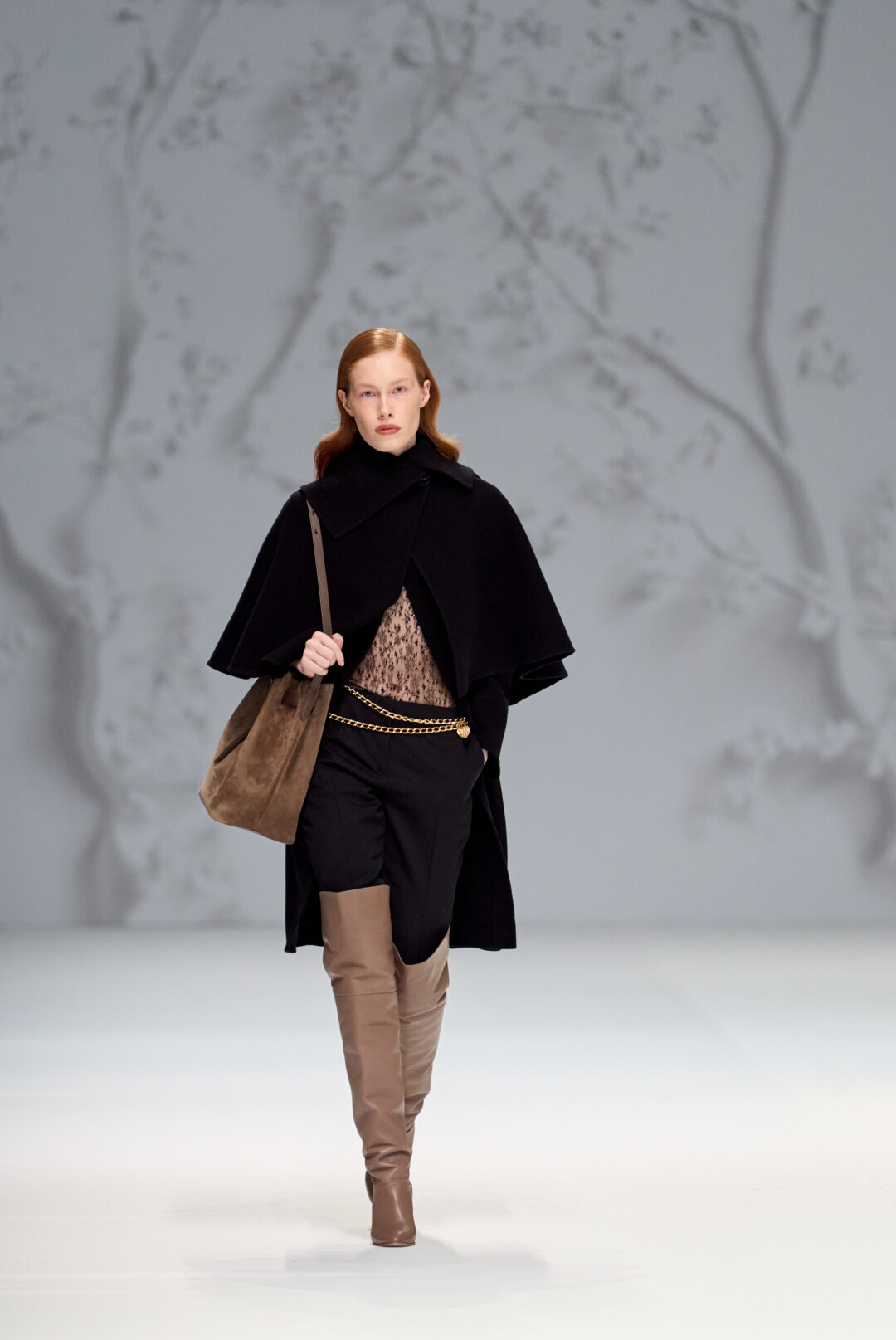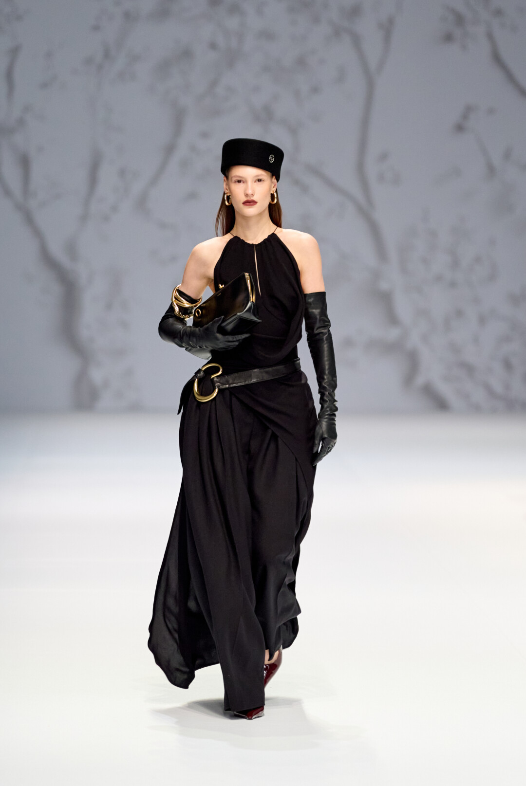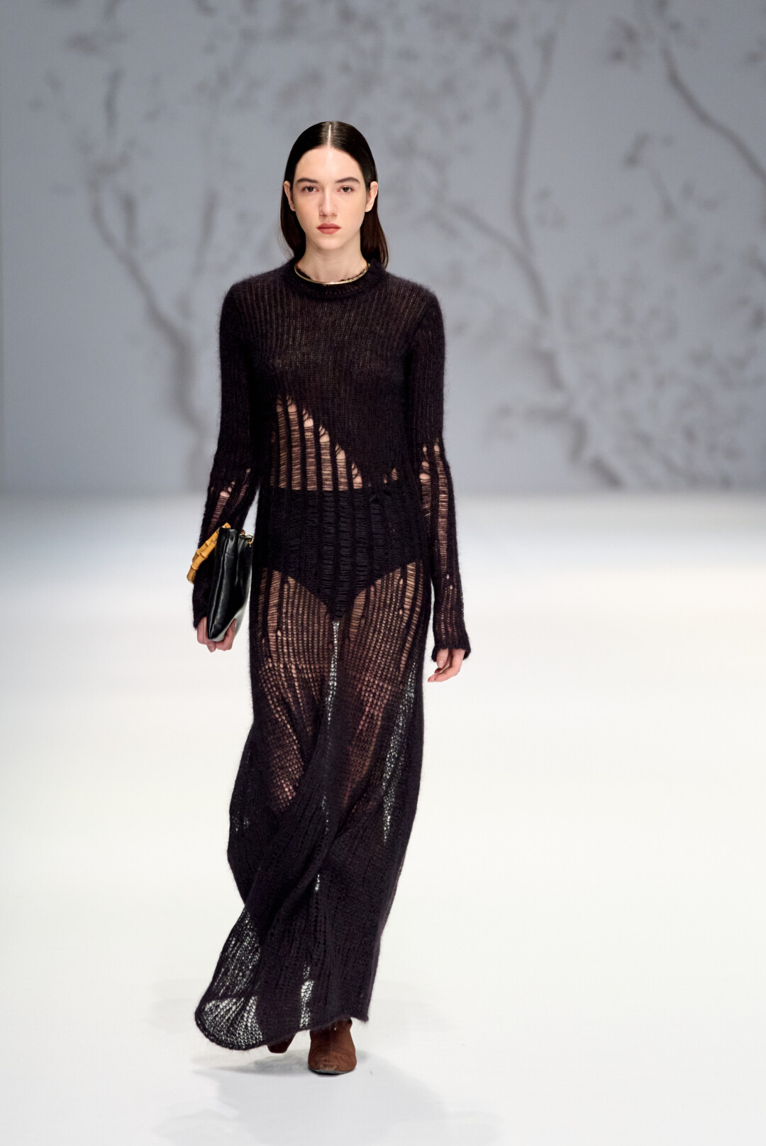Главные тренды — на месте: увидели пальто с меховым воротником MUST, замшевые казаки и сапоги-гармошка Paris Texas, лео-шубу Bottega Veneta, бургунди-трикотаж Valentino, полупрозрачное бохо-платье и кейп Chloe, пояс-цепь Dsquared2 и бархатный кроп-жакет Dolce & Gabbana.