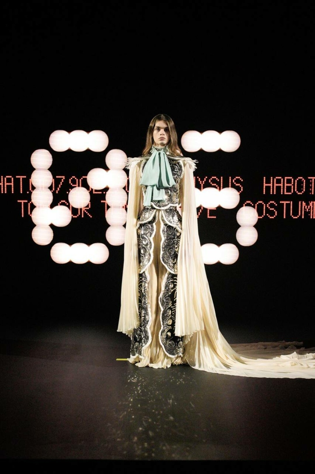 Этой коллекцией (да и всеми предыдущими!) Микеле безмолвно присоединился к риторическому вопросу Дэниела Розберри, заданному после недавнего показа Schiaparelli: «Я так устал от того, что все постоянно приравнивают современность к минимализму: разве новое не может быть проработанным, быть барочным, быть экстравагантным?». Худрук Valentino ответил на него однозначно и сделал это с помощью монументальных кринолинов и турнюров (гранд-тренд кутюрной Недели моды!), метров кружева, величественных шлейфов, меховой отделки, десятков бантов всех форм и размеров, вышивки из страз и стекляруса, а еще — тяжеловесных накидок из мишуры (праздник продолжается!), колготок, полностью расшитых узорами из разноцветных камней, и акцентных головных уборов (от турецких фесок и индейских роучей до диких мексиканских масок для рестлинга — луча либре!). На этом оммажи культурам не закончились: заметили восточные шаровары и орнамент бута (читай: турецкий огурец!), многоярусные испанские юбки, японские кимоно, европейские воротники-горгеры и гобелены.