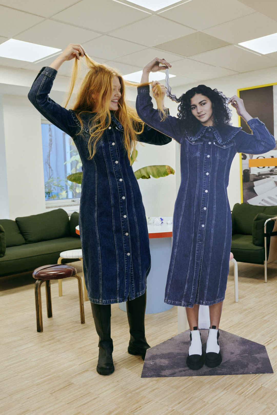Пятерку за экоактивизм ставим коллаборации Levi’s с датским брендом Ganni. Капсула в стиле 1970-х отшита из конопляного волокна: его производство более экологично, чем хлопка. Хит коллекции — платья и рубашки с акцентным воротником «Питер Пэн» — самой узнаваемой деталью стиля Ganni.