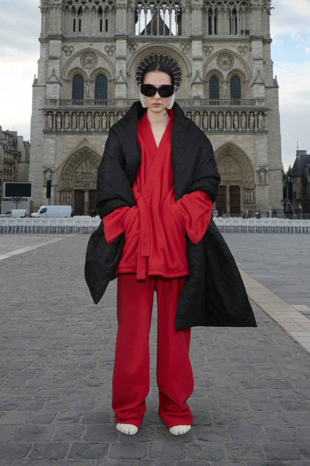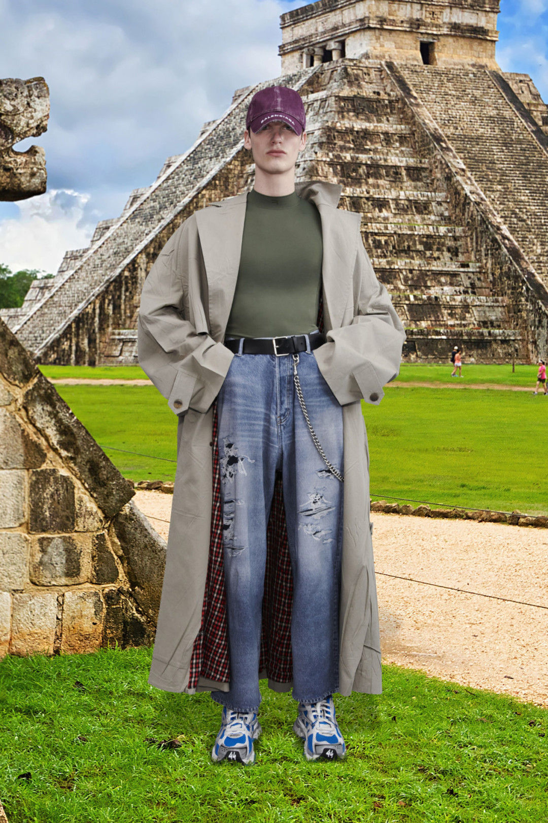 Коллекция включает в себя 58 образов. Креативный директор модного дома Демна Гвасалия остался верен своей стилистике — среди вещей — спортивные костюмы, платья и колготы с цветочным принтом, худи оверсайз, кожаные тренчи, олимпийки, вещи из денима и объемные сумки.