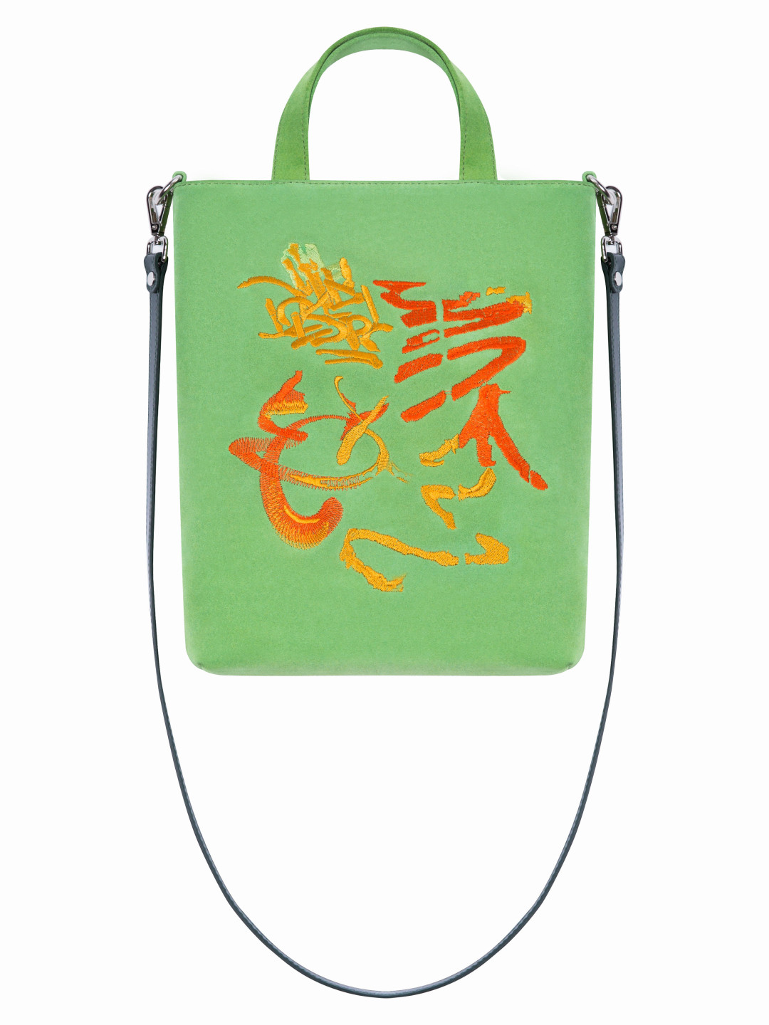 Замшевые сумки с иероглифами-граффити петербургского бренда OLA OLA будем носить по две: одну цвета апрельской травы, другую — румянца зардевшейся нимфы.