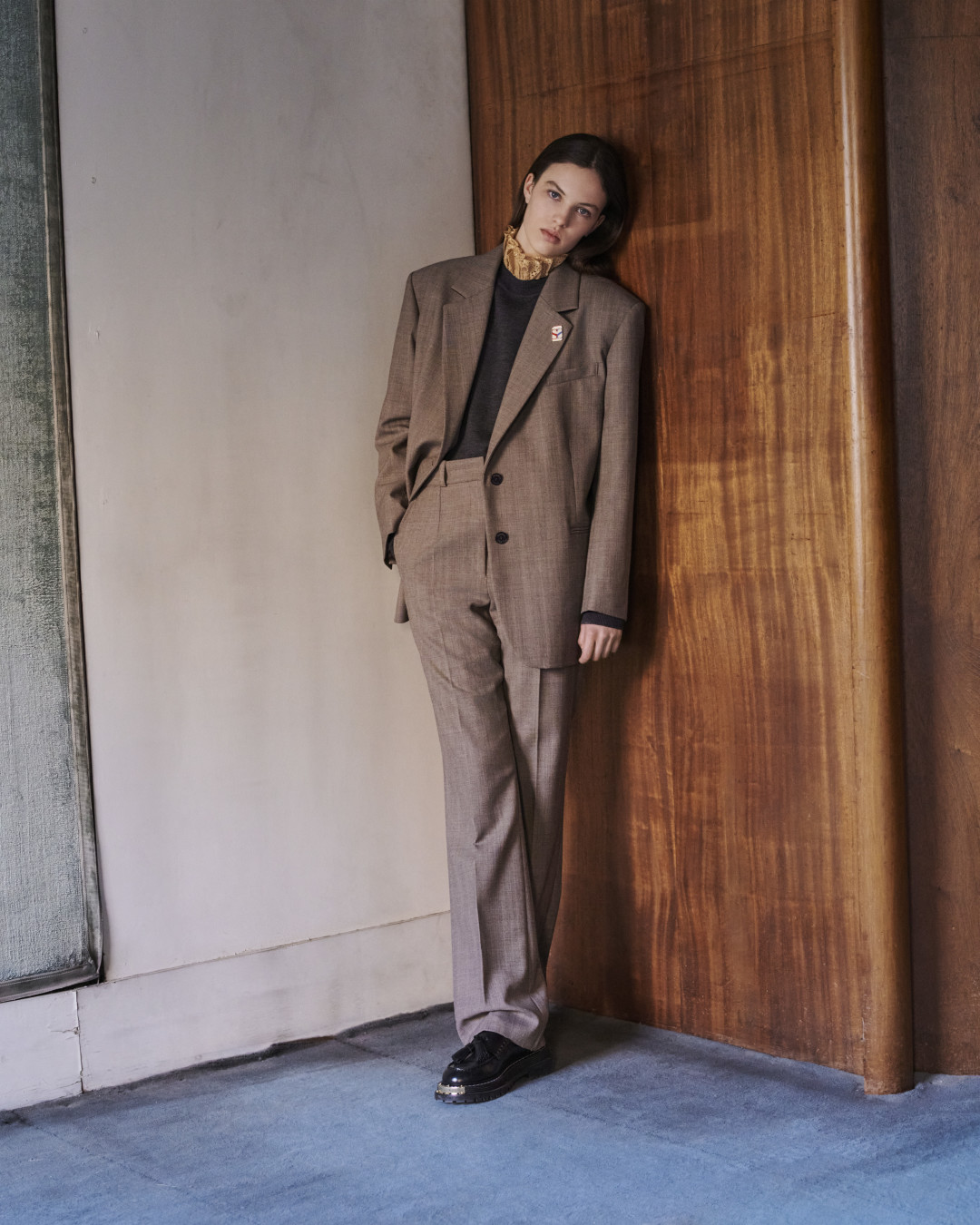 Sandro в новом сезоне выступают за гардероб кочевников, сочетая разные стили, материалы, настроения и эпохи. Не стоит зацикливаться на чем-то одном, лучше соединить, например, визуальные коды французской буржуазии и элементы гардероба путешественника из 70-ых. Микс рождает возможности для экспериментов, поэтому в коллекции Sandro осень-зима 2021 есть и твидовые жакеты, и вельветовые брюки, и вещи из кашемира, и кружевные воротники на блузах, и платья, и шарфы, будто доставшиеся от бабушки, и объемные пальто словно с мужского плеча, и массивные ботинки. Вдохновение ищем в образах легендарного Джими Хендрикса, колесящего по миру.