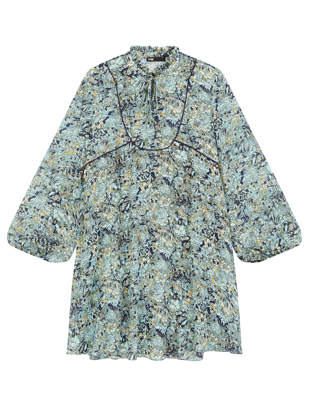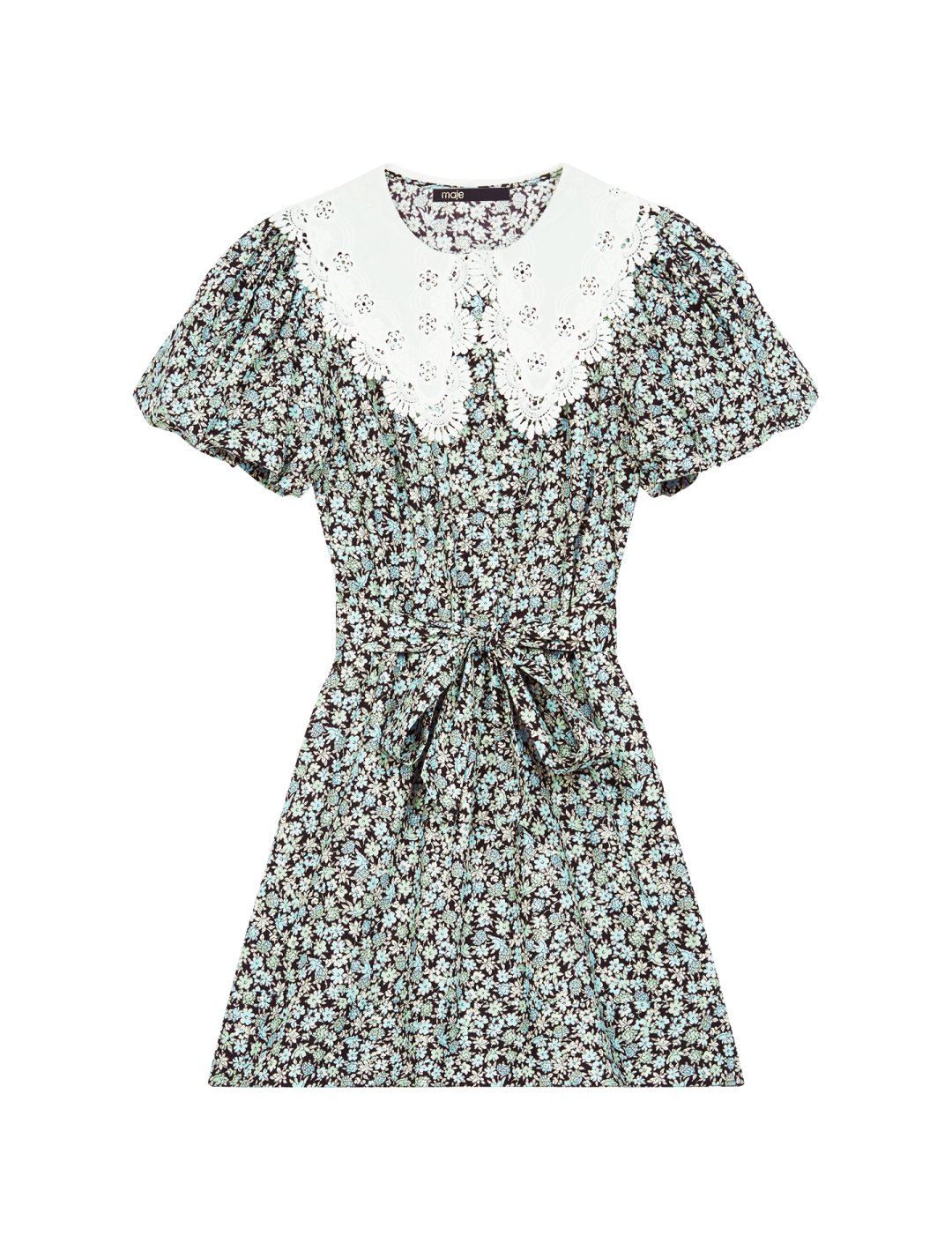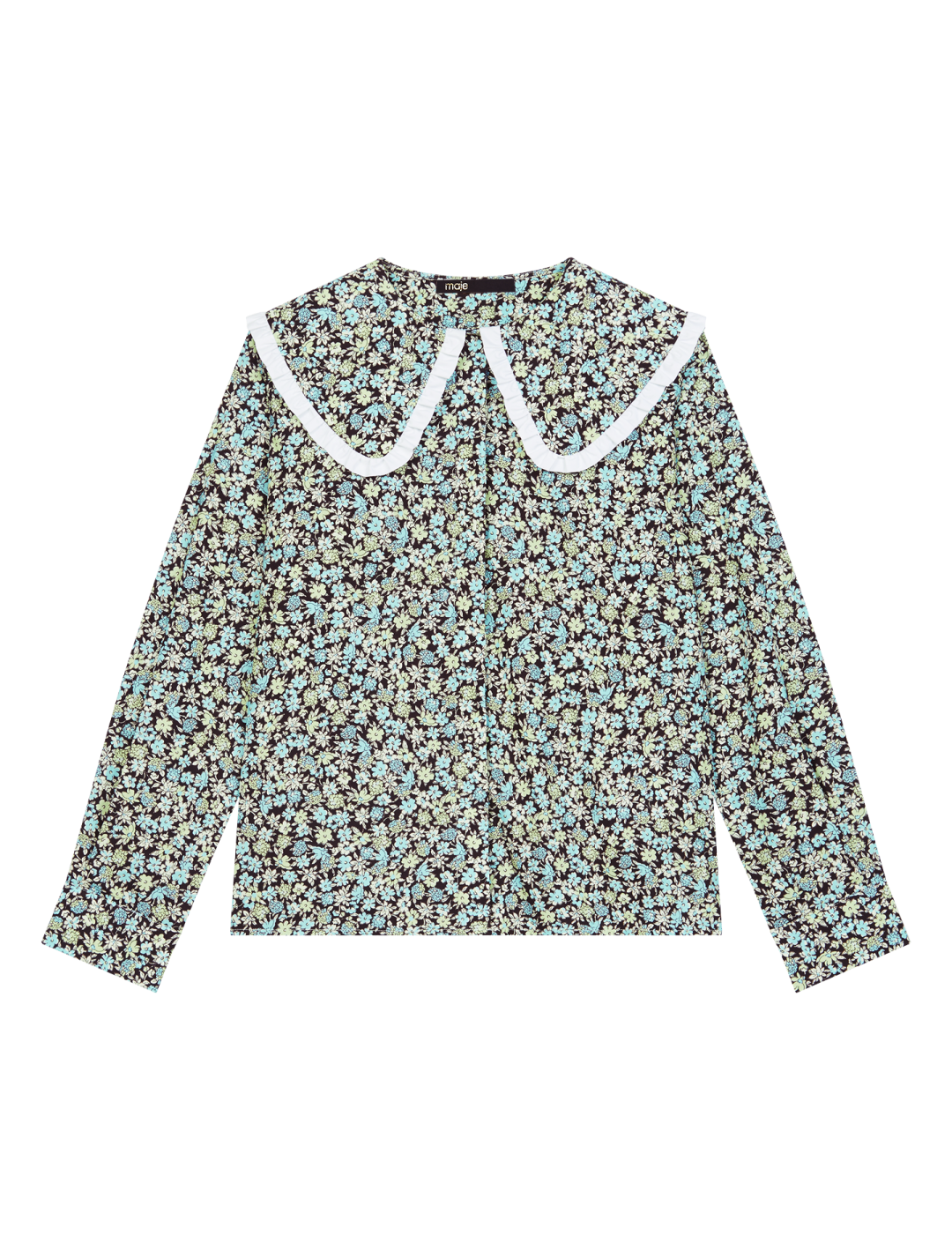 Непростой цвет морской волны снова сделали трендовым Maje. Благодаря цветочному принту платья, юбки и блузы в этом оттенке имеют все шансы стать главным хитом августа. В дополнение блузы украшены кружевными оверсайз воротниками. Создана каждая вещь из натурального материала — хлопкового поплина. В общем, полное эко!