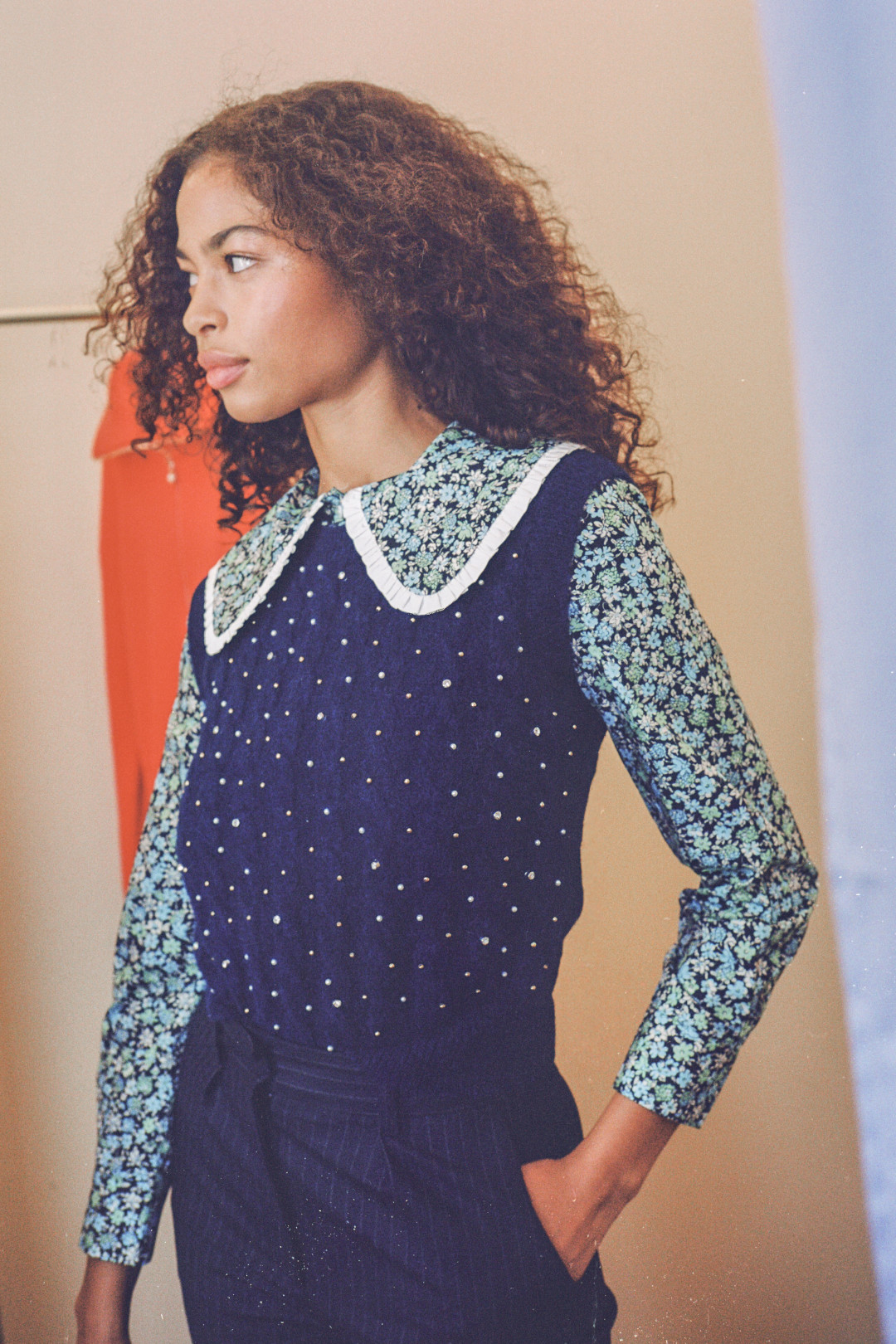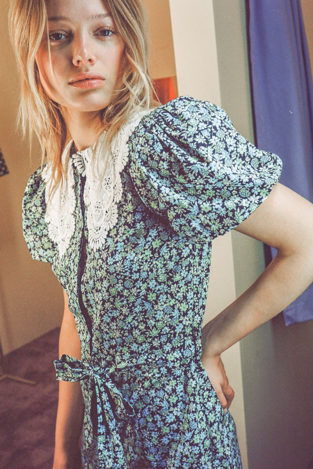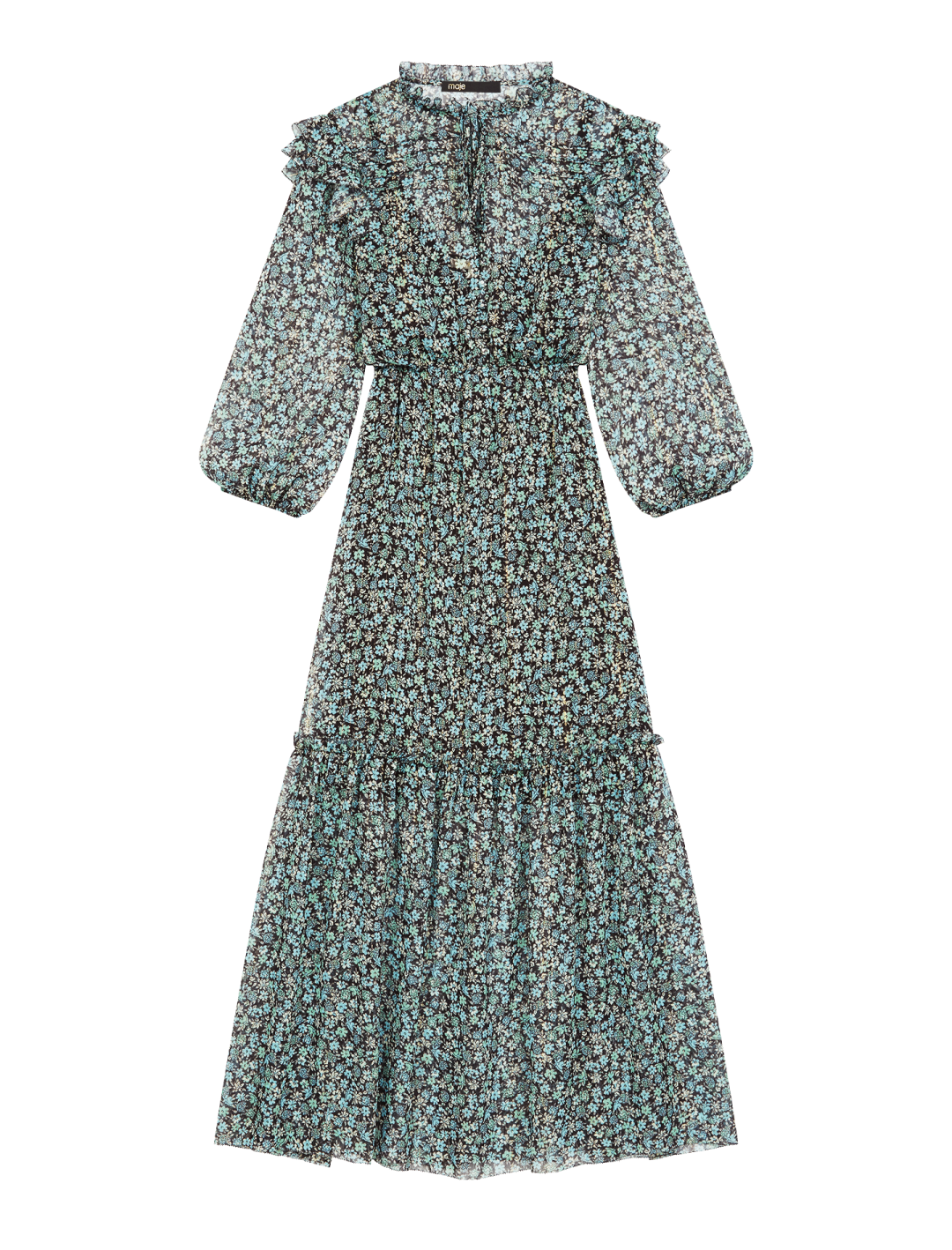 Непростой цвет морской волны снова сделали трендовым Maje. Благодаря цветочному принту платья, юбки и блузы в этом оттенке имеют все шансы стать главным хитом августа. В дополнение блузы украшены кружевными оверсайз воротниками. Создана каждая вещь из натурального материала — хлопкового поплина. В общем, полное эко!