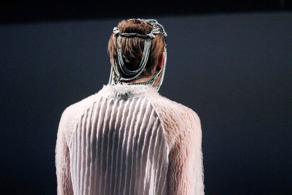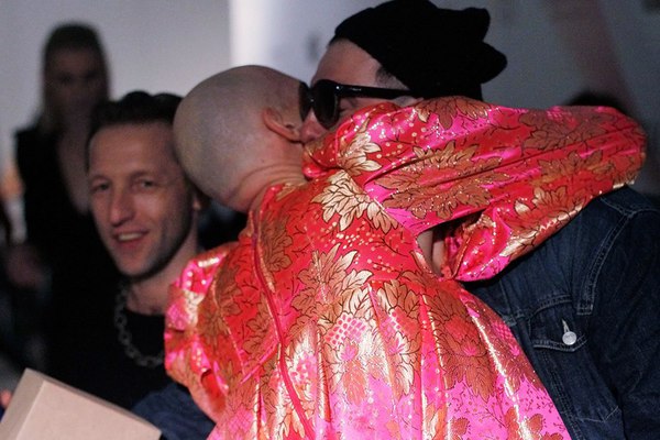 Первым, кто прибегает с поздравлениями на бэстэйдж после показа, — Владимир Бухинник. Пока авангардисты обнимаются, мы детально рассматриваем платье героя второго дня.