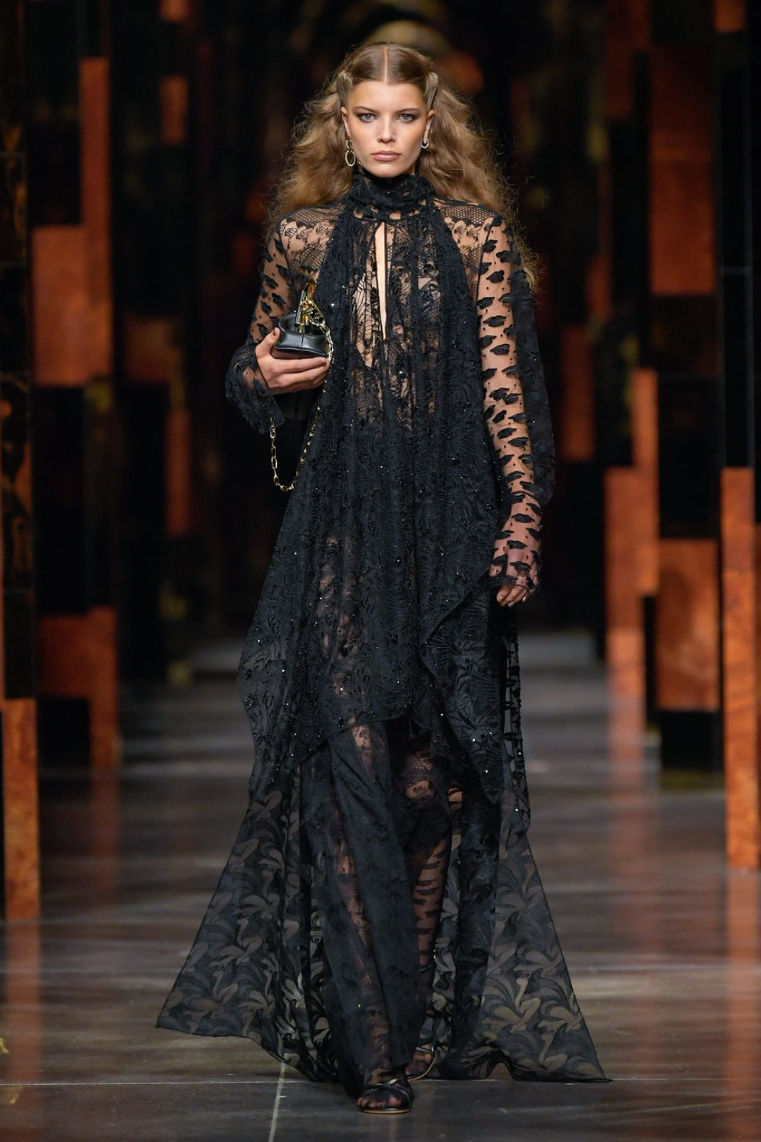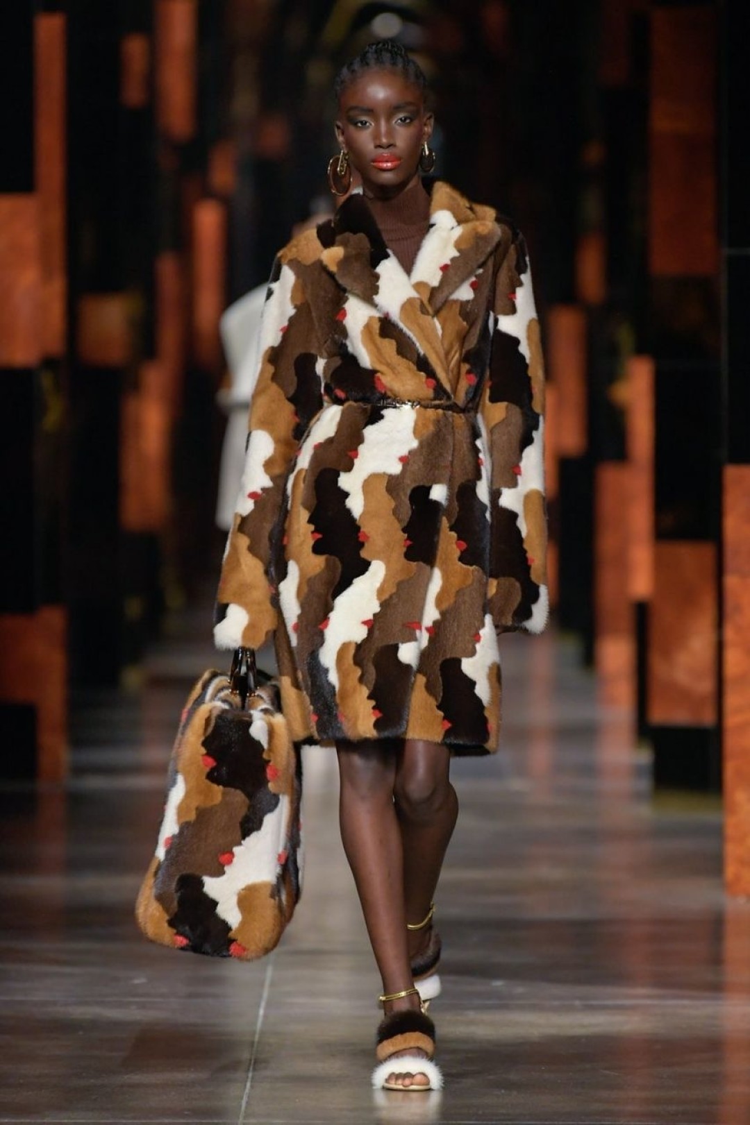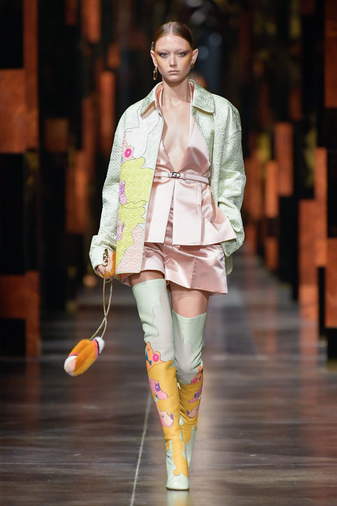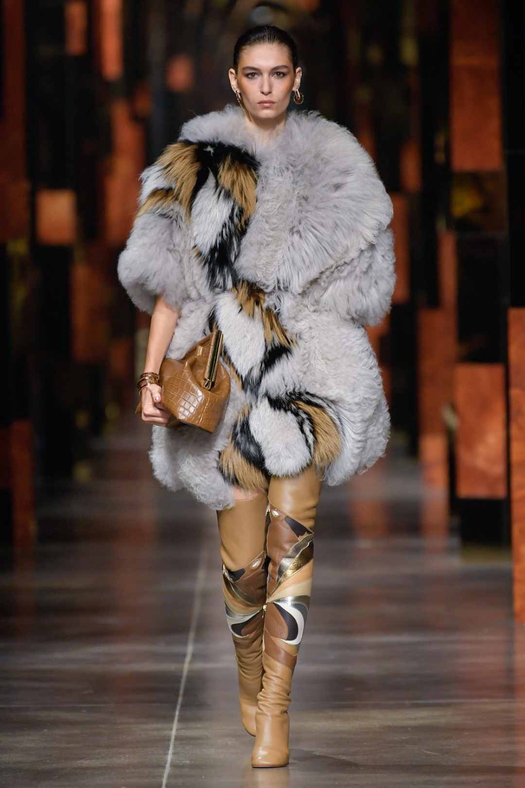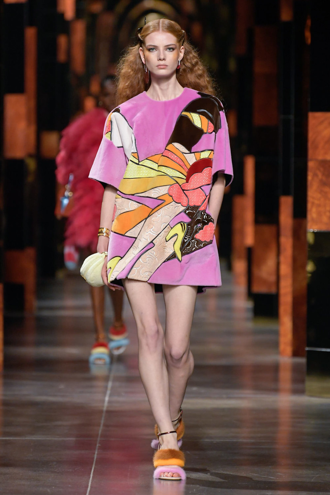 Вещи из новой коллекции Fendi украшены принтами по мотивам работ Лопеса, среди них платья, куртки и даже ботфорты. Также в коллекцию вошли шубы из искусственного меха, костюмы, отсылающие к стилю 80-ых, летящие платья в пол, шорты и мини-платья.