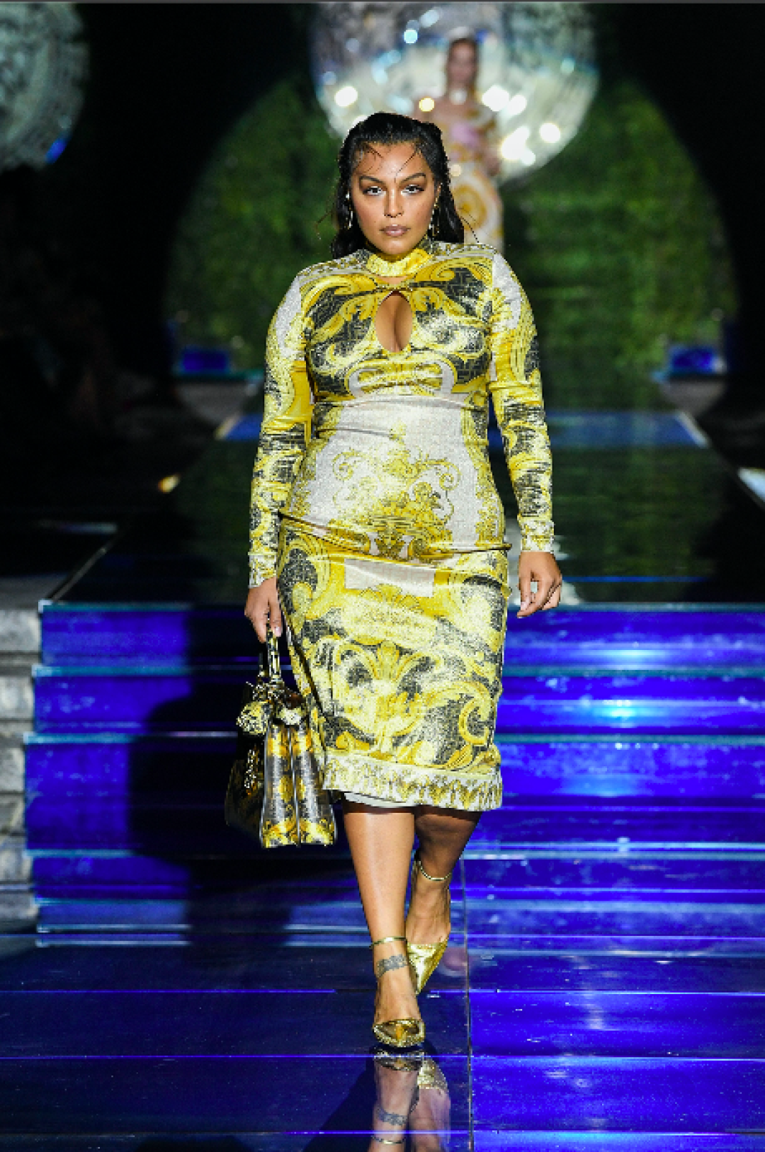 Кроме того, показ Versace x Fendi собрал звездный десант супермоделей. На подиум вышли Наоми Кэмпбелл, Амбер Валетта, Кейт Мосс, Шалом Харлоу, Эмили Ратаковски, Джиджи Хадид, а открыла шоу одна из любимых моделей Джанни Версаче — Кристен МакМенами.
