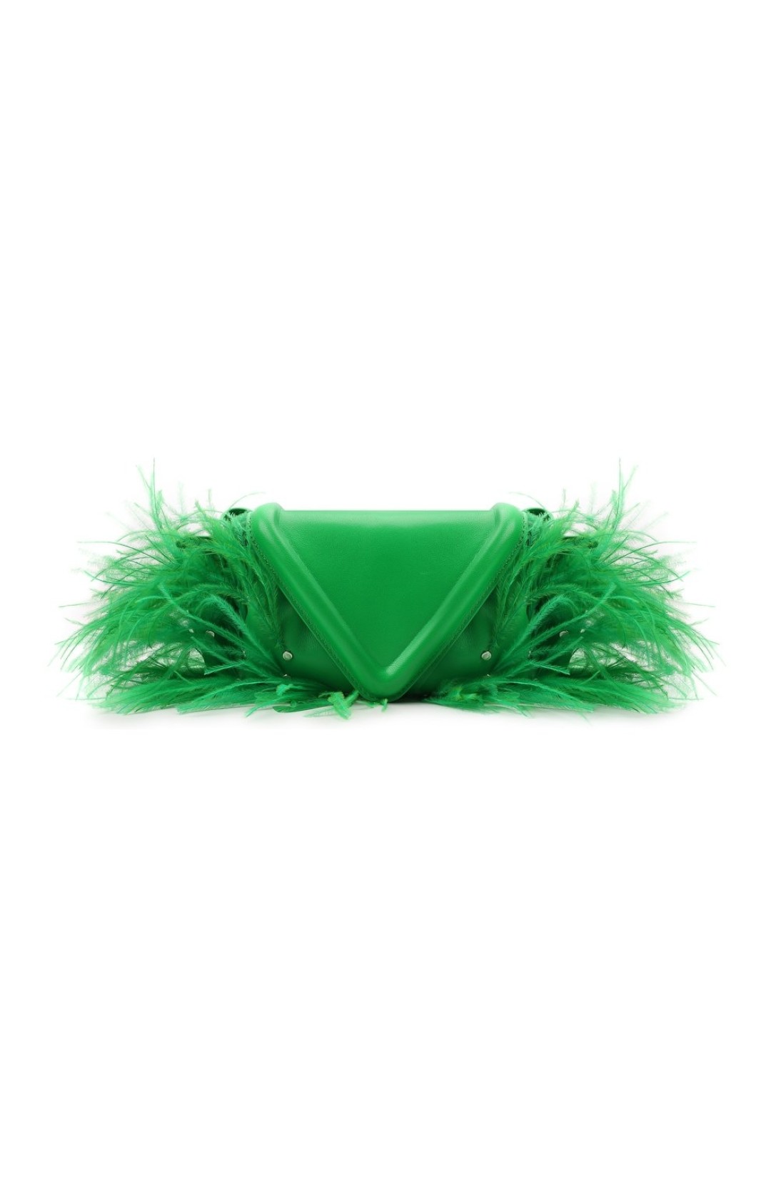 Сумка Beak разыгрывает wow-комбо: духоподъемный зеленый цвет, который в Bottega Veneta называют Parakeet («Попугай»), и невозможно нарядный декор в виде длинных страусиных перьев. Креативный директор марки Дэниэл Ли понял, как сильно мы хотим наряжаться, и украсил клатч из матовой кожи ягненка пышной композицией.