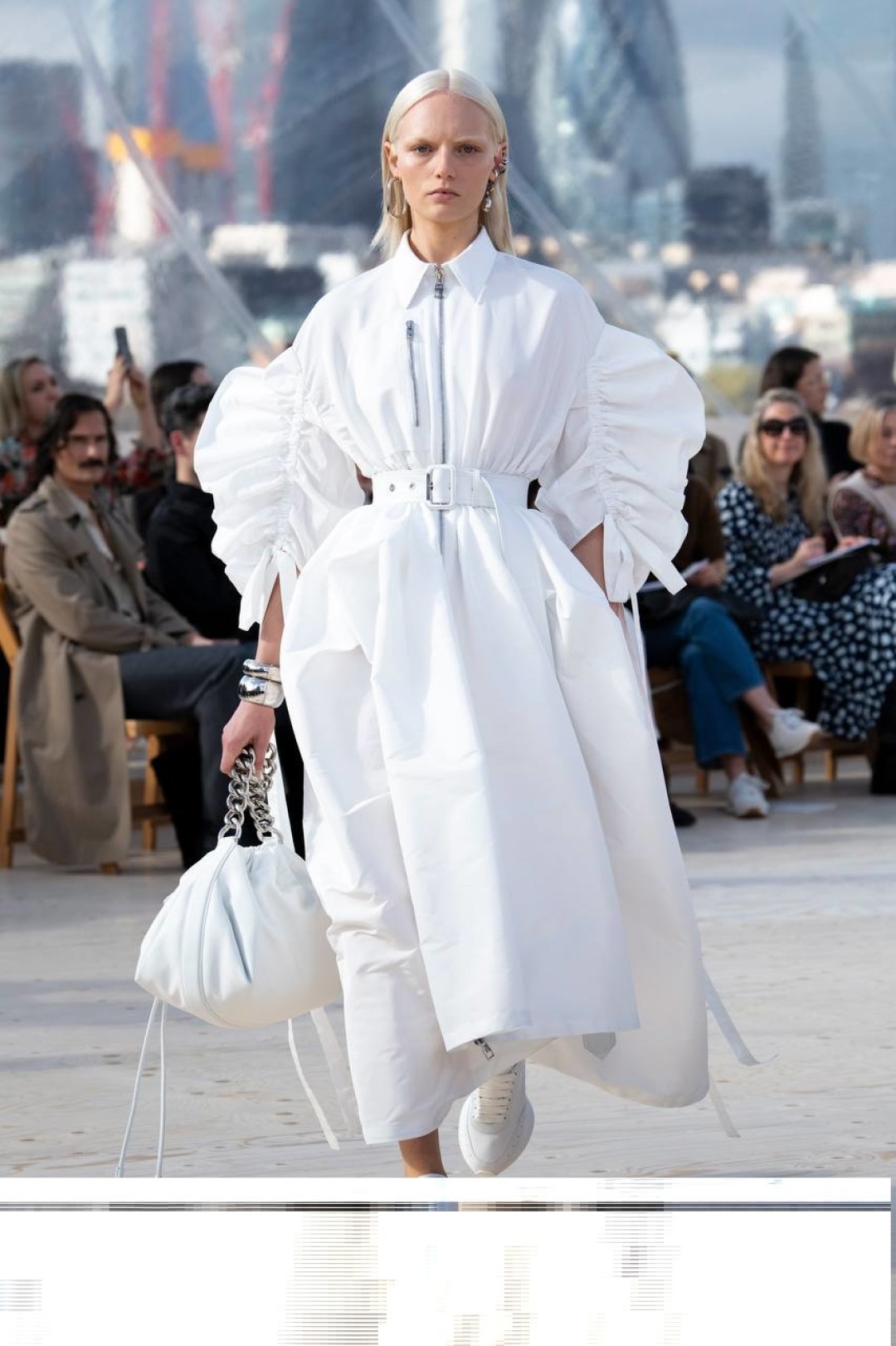 Креативный директор Alexander McQueen Сара Бертон при создании коллекции вдохновлялась архивными работами самого Александра Маккуина. На подиуме бренд показал костюмы, украшенные в качестве декоративных элементов молниями, платья, тренчи и пиджаки с объемными рукавами-фонариками, корсетные платья и платья с пышными юбками. Основные материалы коллекции — тафта, шелк, микс денима и кожи, а также тюль.