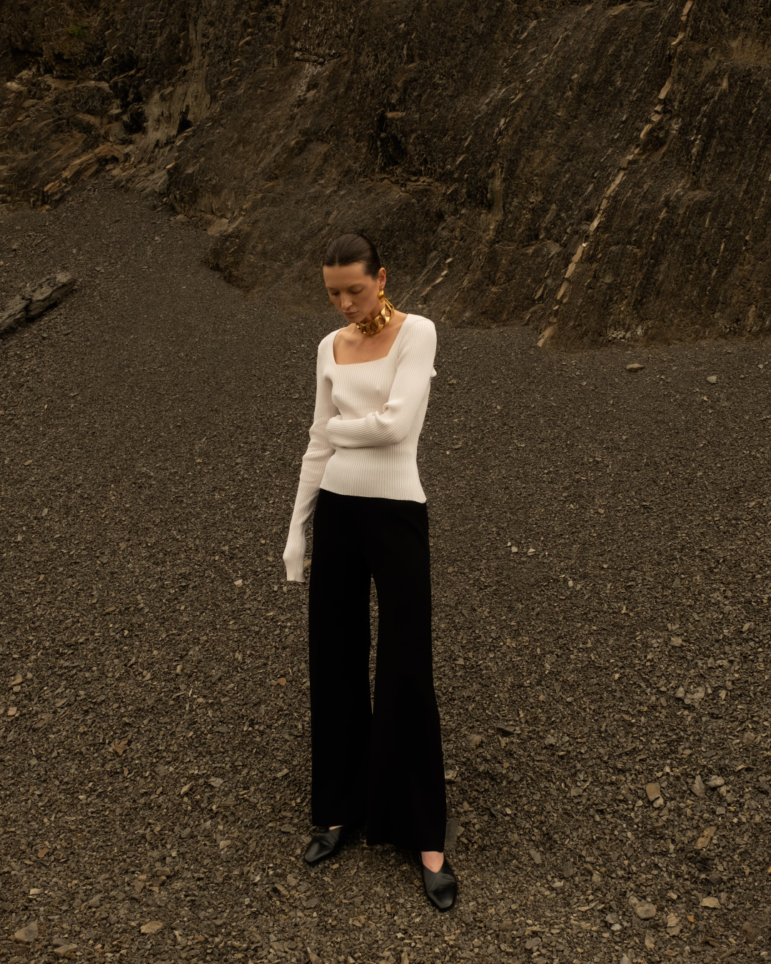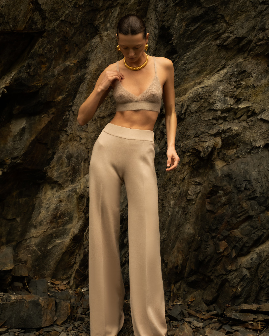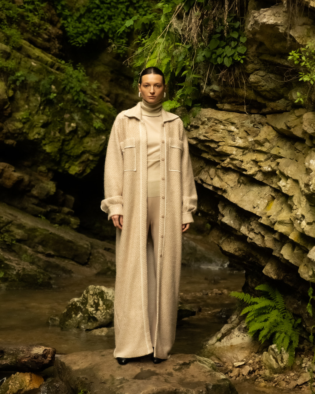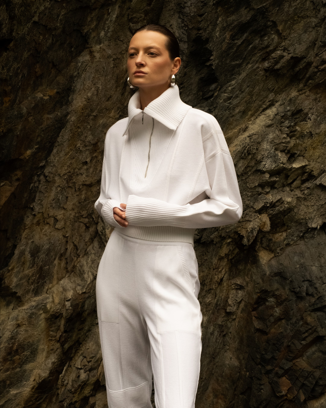 Производство марки находится в Петербурге и представляет собой экспериментальную творческую лабораторию. За высокие технологии отвечают японские вязальные машины Shima Seiki (они же в арсенале у премиального бренда Loro Piana), благодаря которым удалось создать новую пластику связанного полотна. Такая вязка делает вещи невесомыми, теплыми и тактильными, а также бережет ресурс работников производства. Кроме того, AND the brand не работают с готовыми тканями, даже в основе их бадлонов самостоятельно созданное плетение.