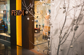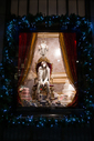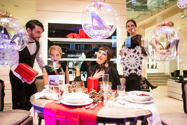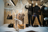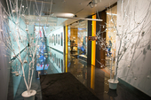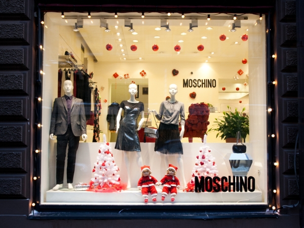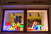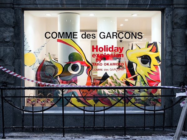 Рисунки японской художницы, неоновые елки, перфоманс в окнах — и еще пять способов украсить витрины к Новому году.