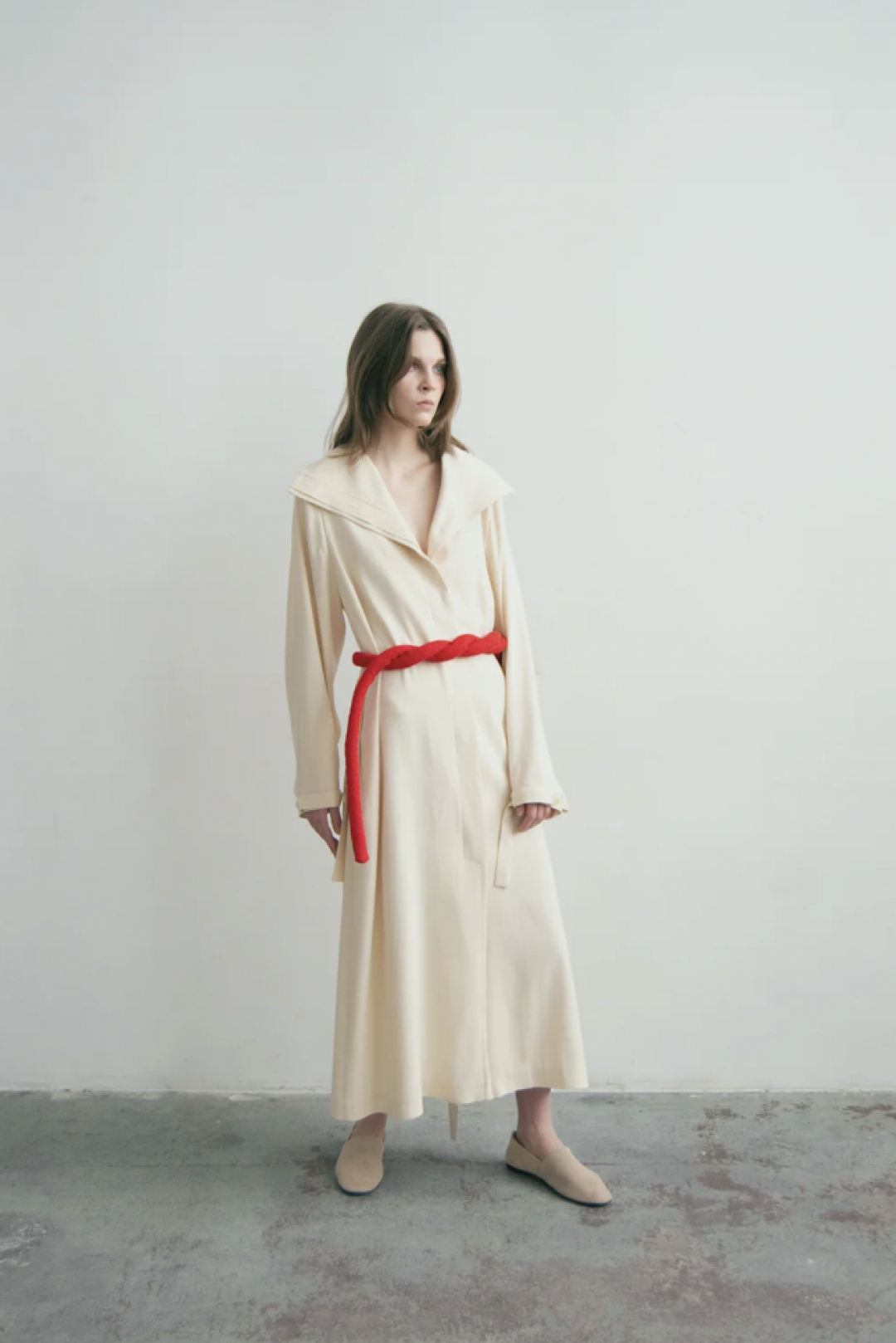 Концепция марки The Clou из Нижнего Новгорода построена вокруг личности. И нет, суть не в том, чтобы «подчеркнуть индивидуальность», а в том, чтобы через эстетическое переживание найти путь к свободе. По мнению создательницы марки Татьяны Чернышевой одежда должна лишь дополнять образ, а не создавать его. Для отражения этой идеи минимализм подошел идеально. Но не все так просто — базовые по силуэту и цветам платья дополняют пояса-жгуты, тренчи — отстегивающиеся кокетки, кулисы и накладные карманы, а пальто превращаются в кейпы.