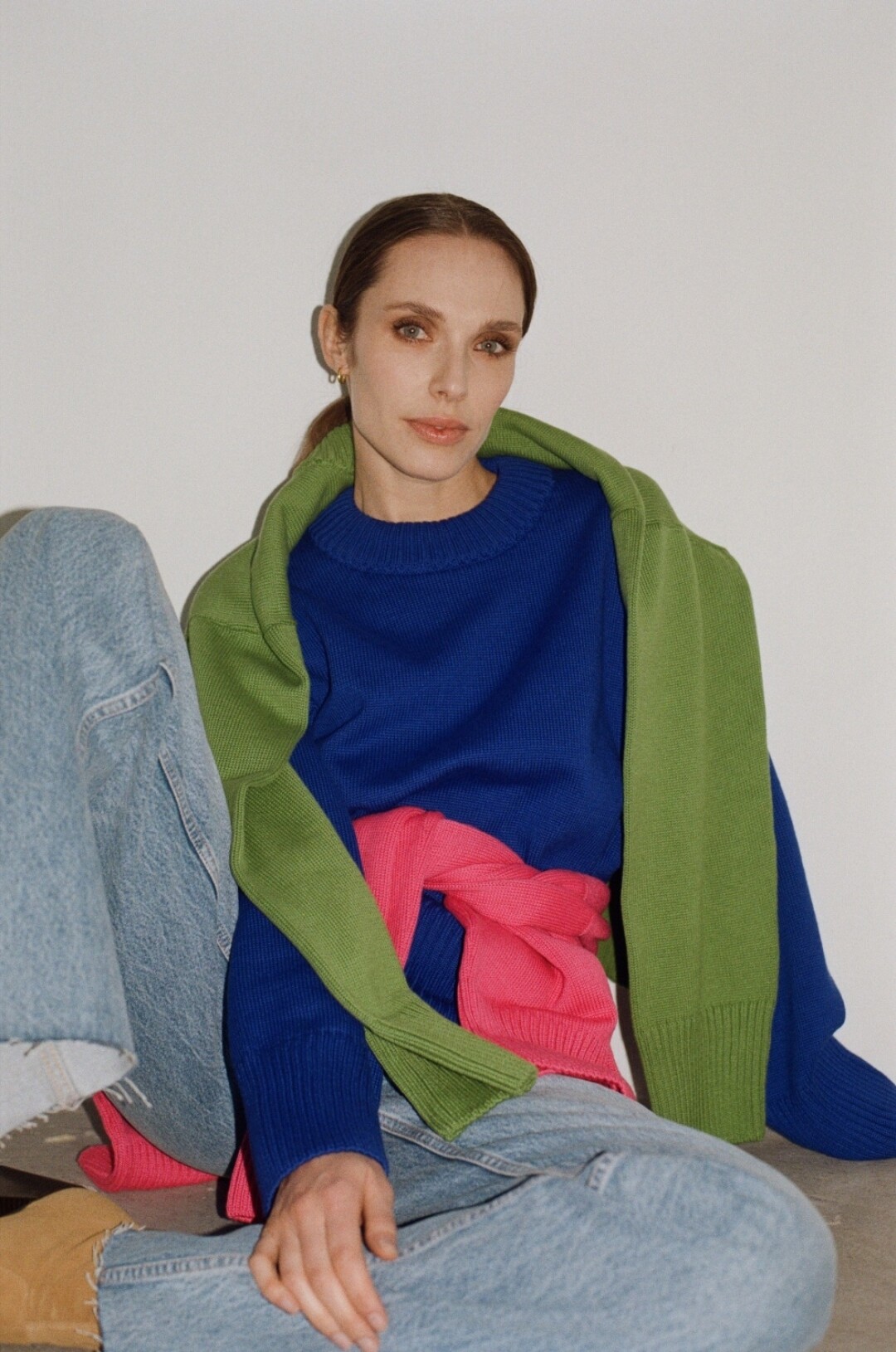 Екатеринбургская марка особенно следит за долговечностью своих вещей — чтобы не скатывались и не теряли форму. По этой причине и работает с натуральными материалами, например, кашемиром и мериносом. Именно такие ткани в основе базовых и практичных джемперов, жакетов, платьев, костюмов и кардиганов. Ну а еще это красиво!