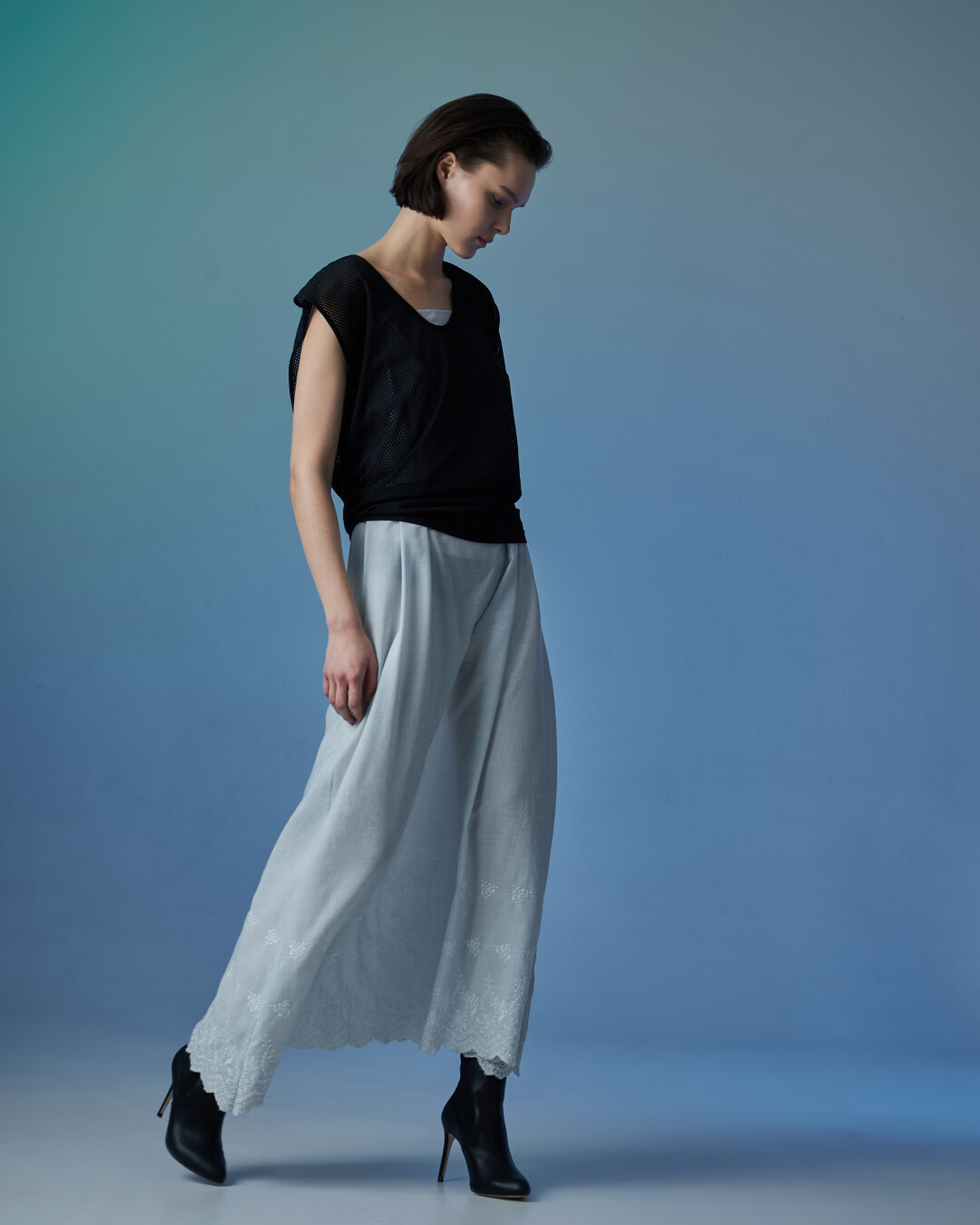 Северный минимализм — это про бренд fy:r, созданный Светланой Сальниковой. Вещи марки нельзя назвать конвенционально базовыми, но они точно станут таковыми для тех, кому близка народная эстетика. В основе марки — русская культура — традиционная, классическая и современная. Света удачно и тонко объединяет народное мировоззрение, визуальные кода страны и сегодняшние реалии. Результат — как понятные юбки, платья и топы, так и душегреи, долгорукавки и сарафаны.