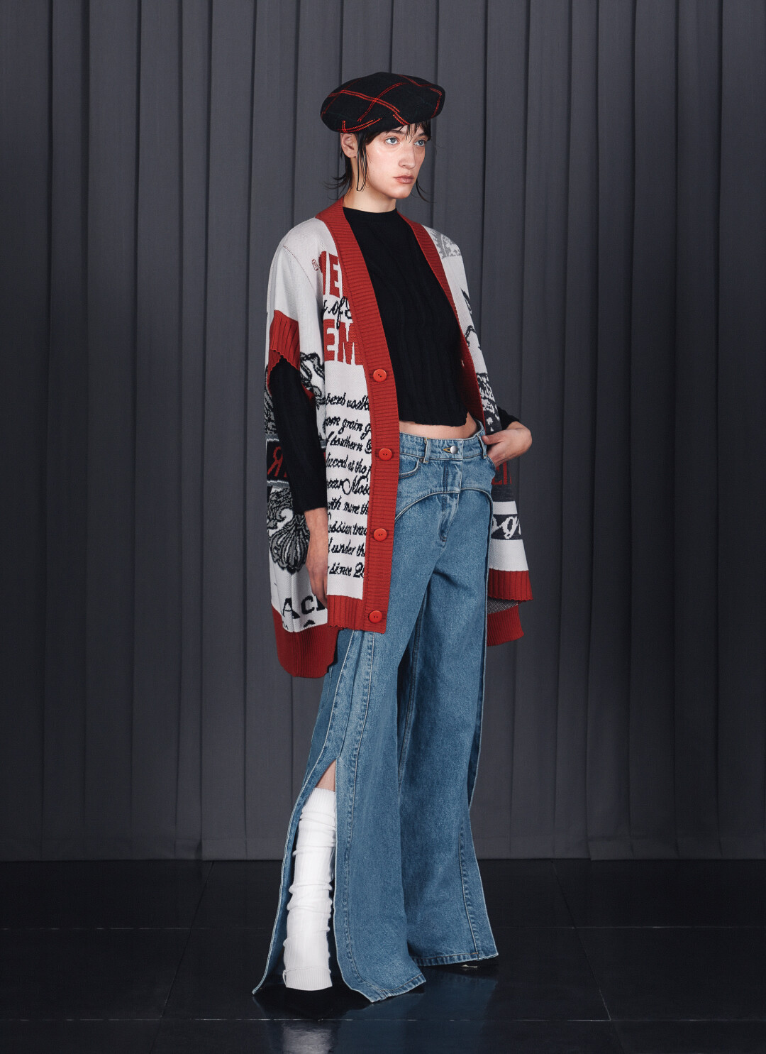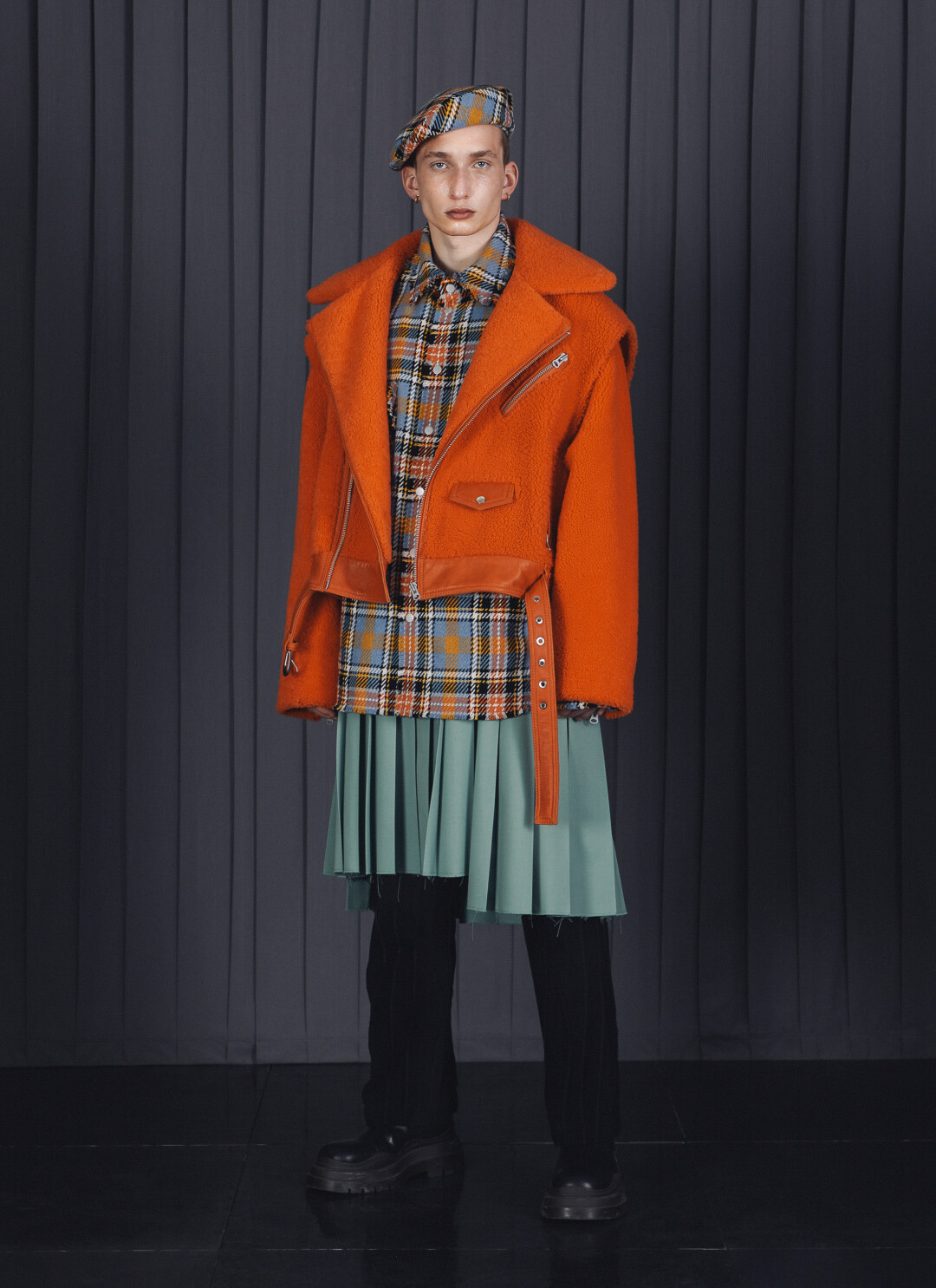Также в коллекции много объемной верхней одежды и денима. Главный стилистический прием — многослойность. Например, клетчатые юбки-плиссе на брюки и платья поверх брюк.