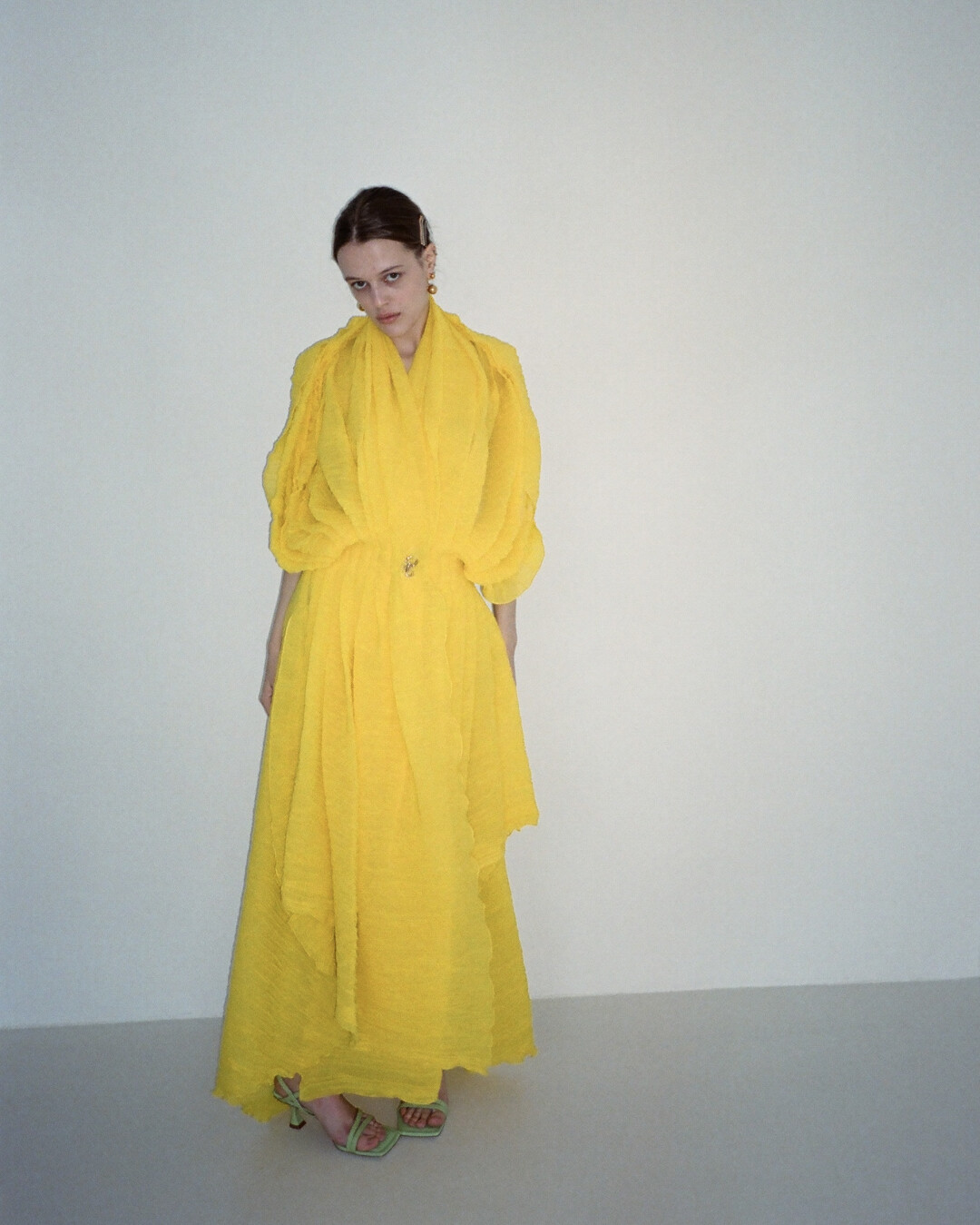 Бренд 404 NOT FOUND в прошлом году запустил свой второй проект — ателье 404 NOT FOUND | ATELIER, которое работает над нетиражными коллекциями. В новой коллекции FLORA девятнадцать платьев-бутонов ручной работы. При работе над ней дизайнер Алена Феликсова вдохновлялась картинами Поля Гогена, Михаила Врубеля, Александра Бенуа, Евгения Гордиеца.