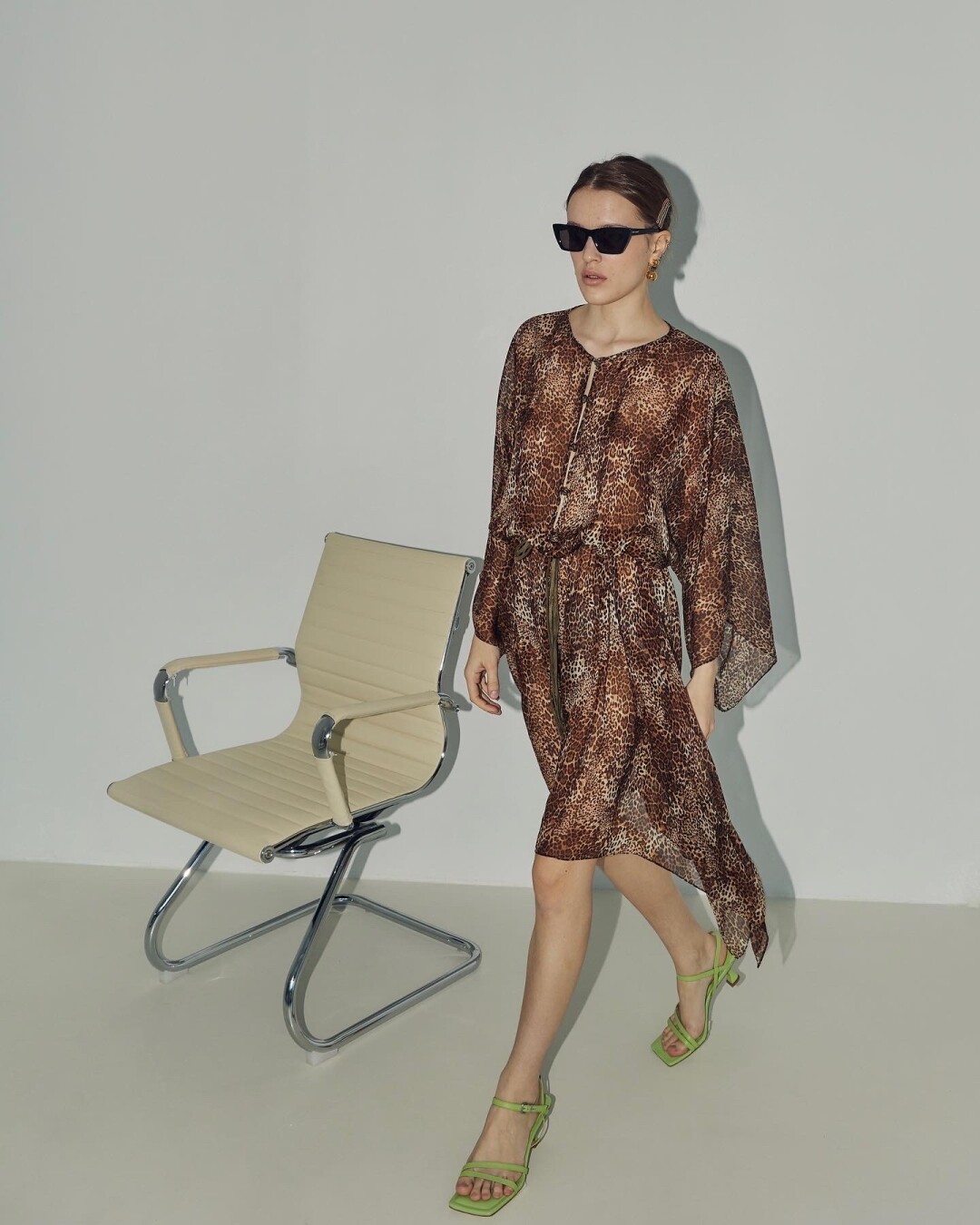В основе коллекции не только искусство, но и свойства материала — шелка, привезенного из Франции и Италии. Алена Феликсова отталкивалась от его фактуры, «поведения» в динамике и принтов. В процессе работы и родились силуэты-бутоны. Среди платьев модели с рукавами-буффами, с корсетом, с пышной юбкой из нескольких слоев сетки с шелковым подкладом. Украшены они хрустальными пуговицами, камнями Swarovski и застежками в форме тигра или скорпиона.