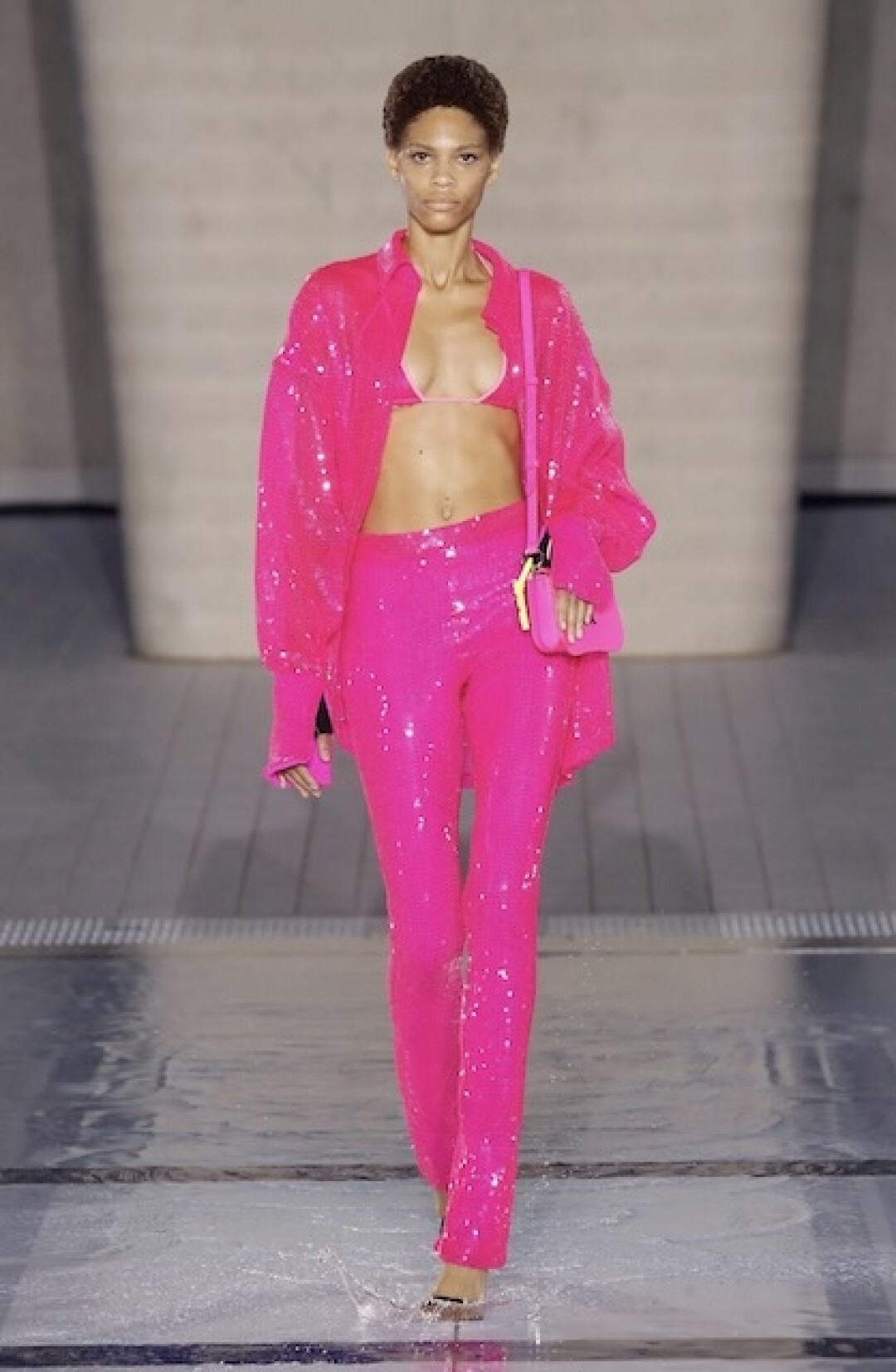2022 год заявил о себе ярко и ослепил количеством страз и блестящих тканей. Летние стилистические решения не стали исключением. Пайетки, блестки, микроглиттер — отличный выбор для пляжной вечеринки или after-party у бассейна. Поверьте, остаться незамеченными в таком купальнике невозможно. Закончить ансамбль можно брюками или юбкой в тон.