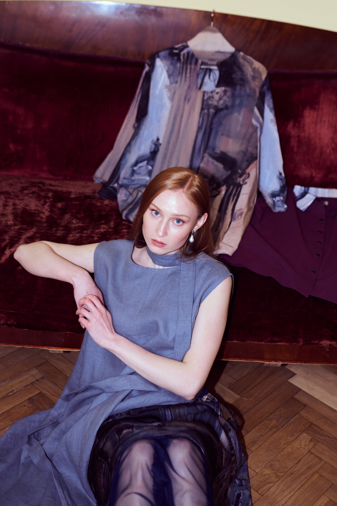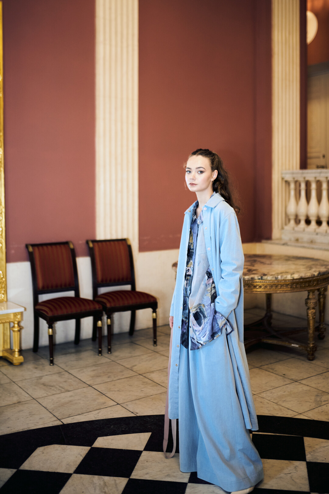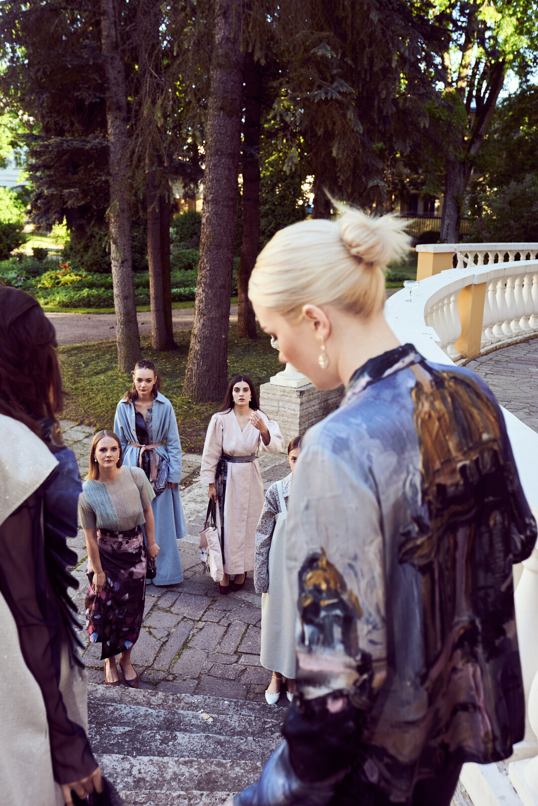 Петербургская марка NATALI LESKOVA презентовала новую коллекцию. Показ прошел в «Царском селе» в белом зале особняка Кочубея. Художник и дизайнер марки Наталия Лескова превратила шоу в перформанс. Под аккомпанемент солиста Санкт-Петербургской капеллы Ильи Чирскова модели вышивали, читали книги, раскладывали карты таро, разыгрывали сцену примерки нарядов на вечеринке подруг.