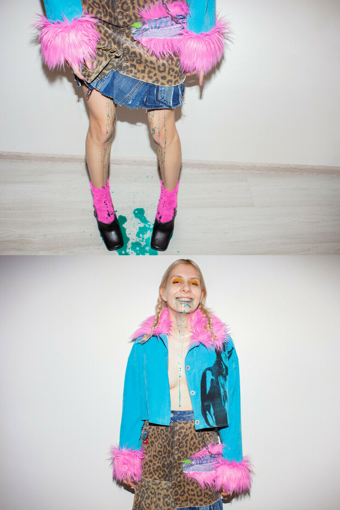 «Уничтожение первоначальной формы изделия рождает новую вещь, транслирующую новый смысл», — говорит основатель марки Дима Магний. Для дизайнера апсайкл — эксперимент, благодаря которому появляются свежие абстрактные визуальные образы. Дима скрещивает разные вещи и их элементы очень успешно — он не только делает носибельную и очень красивую одежду, но и уже успел посотрудничать с брендом Levi’s и творческим объединением Kruzhok. А это признание!