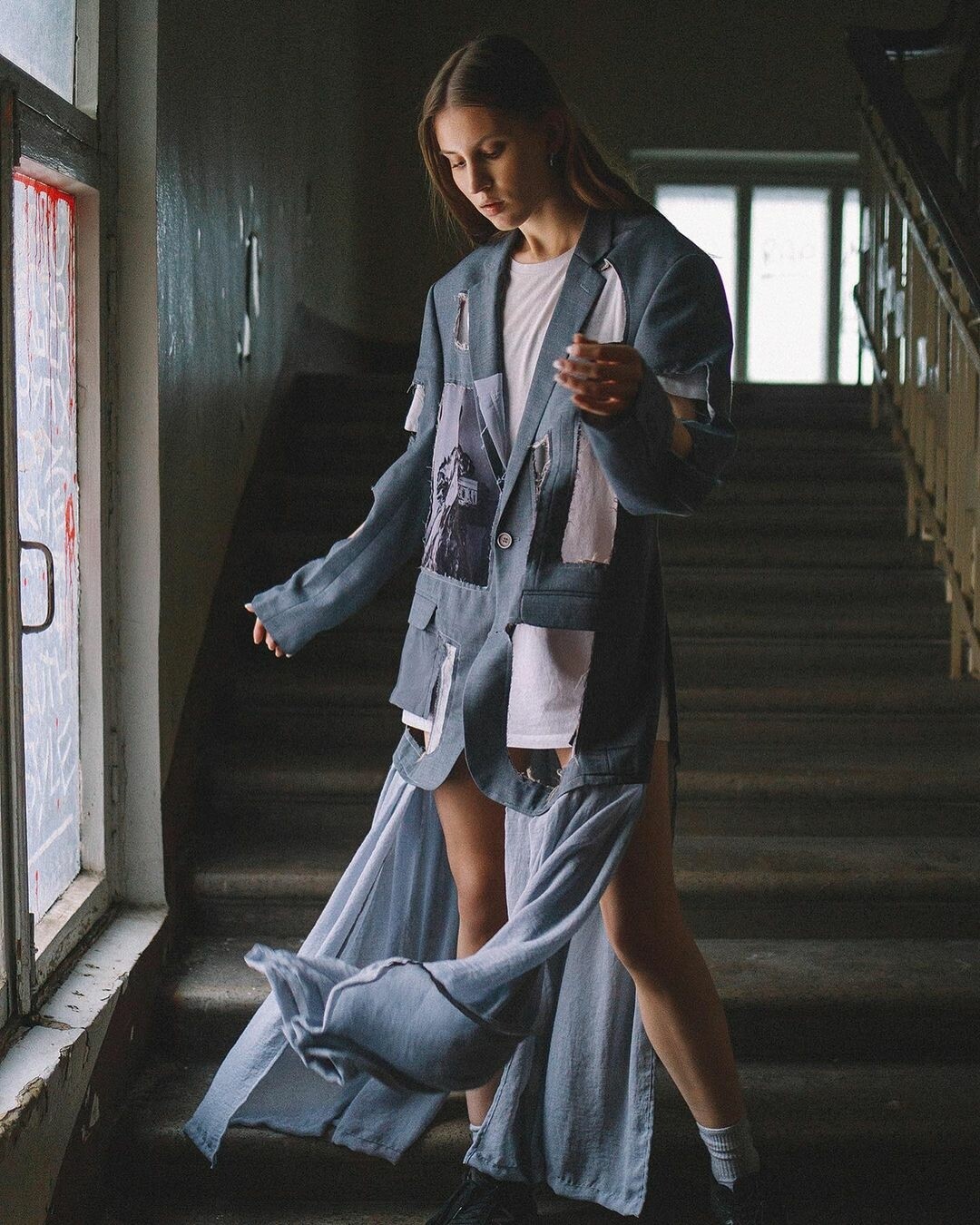 Этот апсайкл-проект появилсяв 2019 году. Придумали и запустили его Ксения Ярема — дизайнер, и Ольга Немушкова, которая отвечает за продвижение. Вместе они создают современные пиджаки из винтажных, используя деконструкцию — любимый прием Ксении, и ассиметричный крой. В качестве основы используют, например, бельгийские офицерские кители 60-х годов. Кроме того, можно воспользоваться услугой апсайклинга — принести свою вещь (старый дедушкин мундир или свадебный пиджак отца) и получить новую.