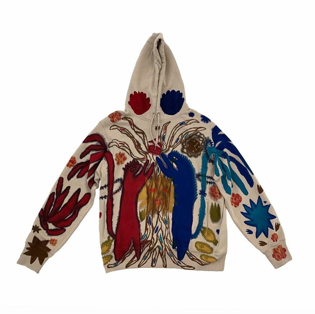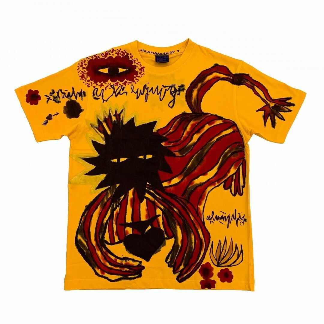 Фантазийность, эстетика наскальной живописи и инфернальность — это рисунки художницы из Нижнего Новгорода Марии Моляновой. Именно их дизайнер наносит на одежду. Ручной росписью Мария занимается уже шесть лет, а с классической техникой батика она познакомилась еще в колледже, где и начала экспериментировать с текстилем. В ассортименте марки salamaaashop рубашки, футболки, брюки, свитшоты и худи.