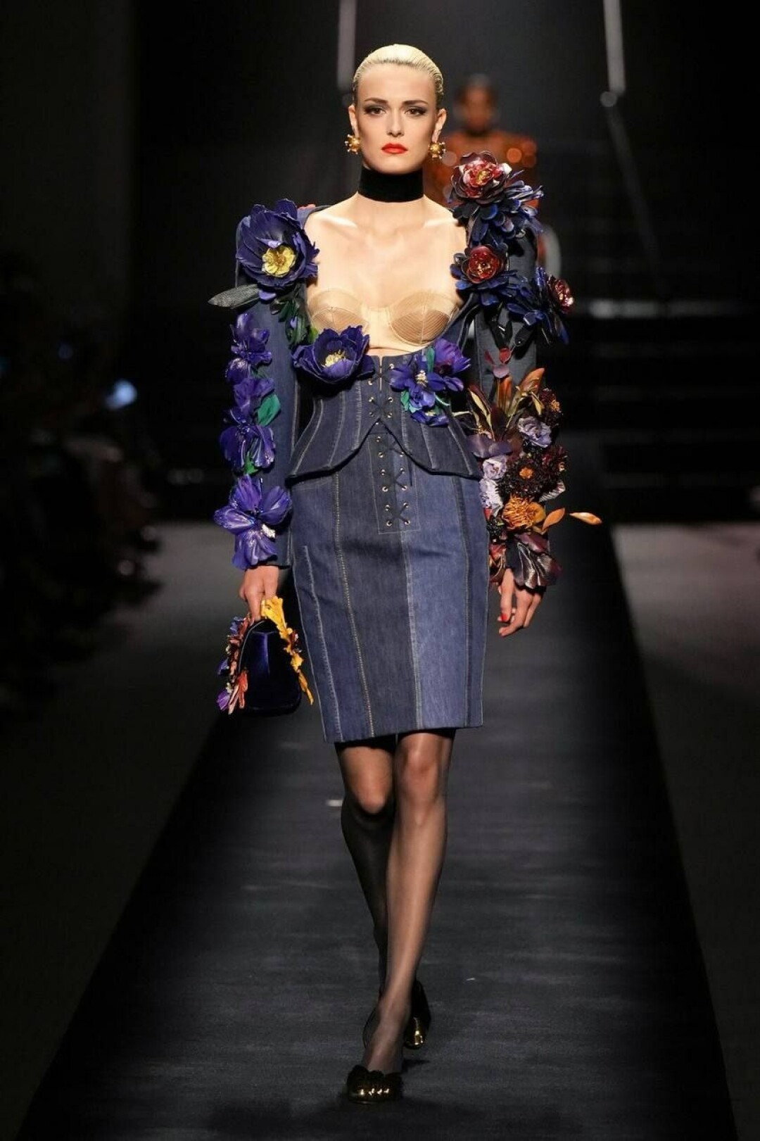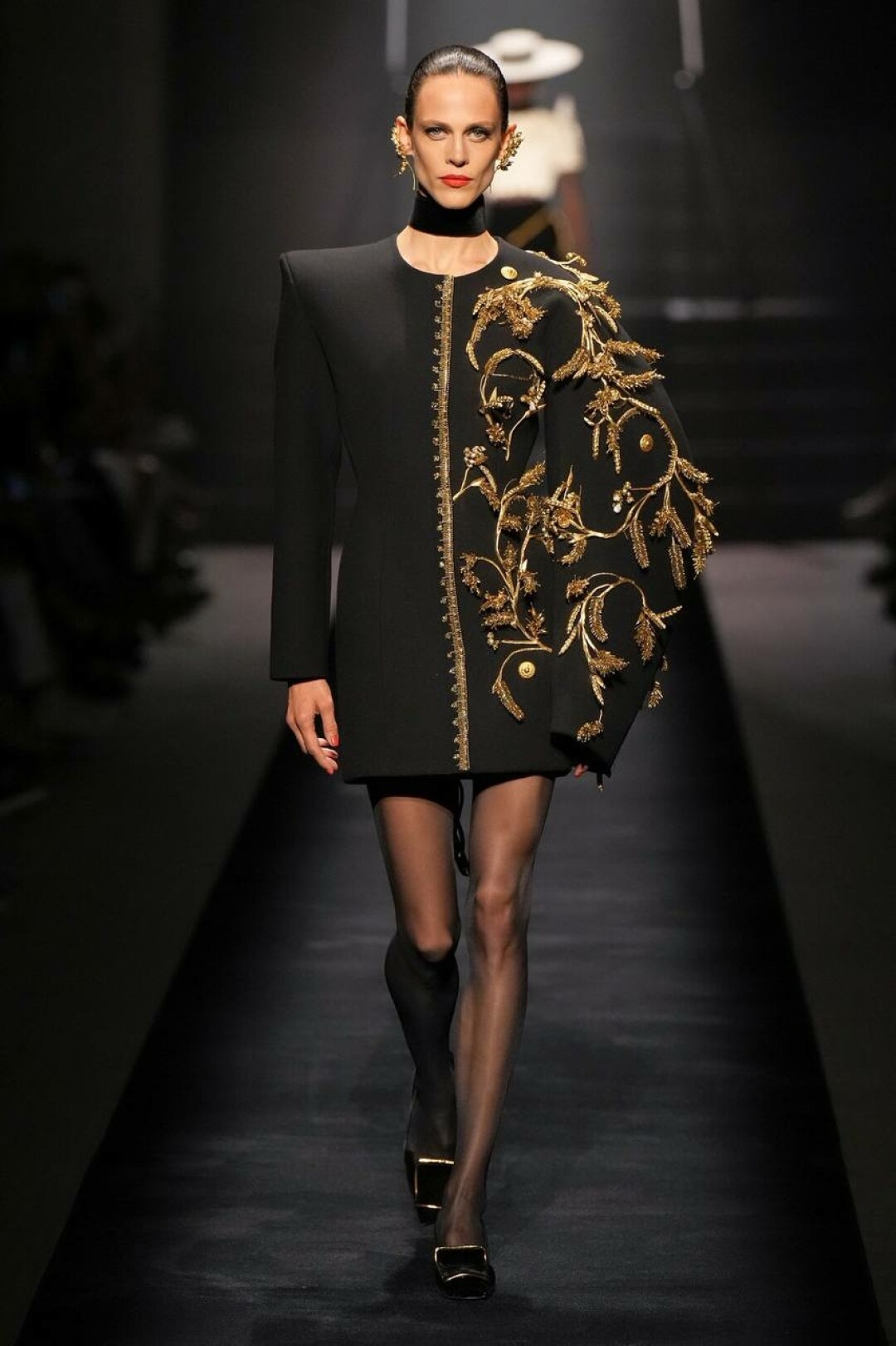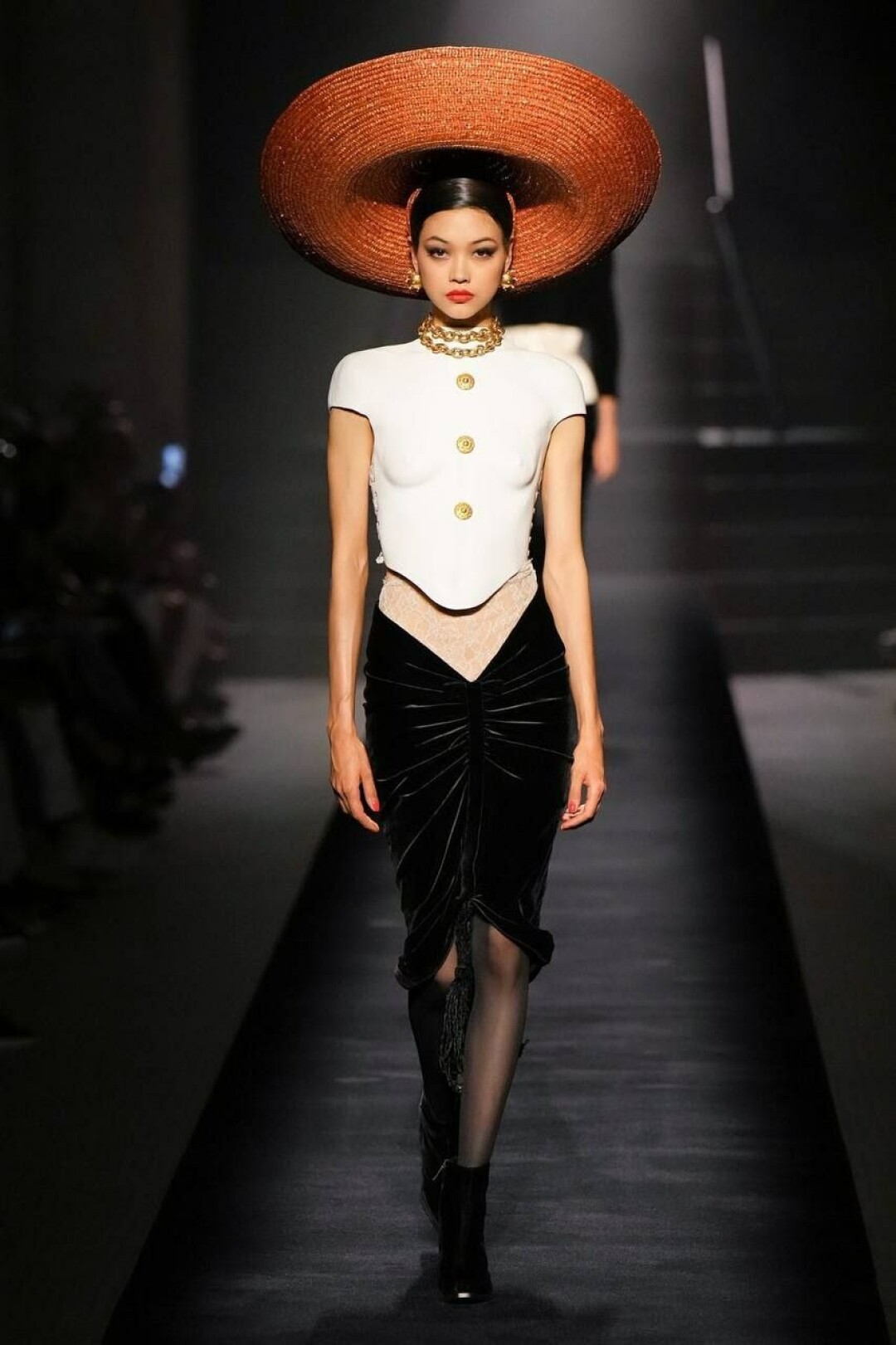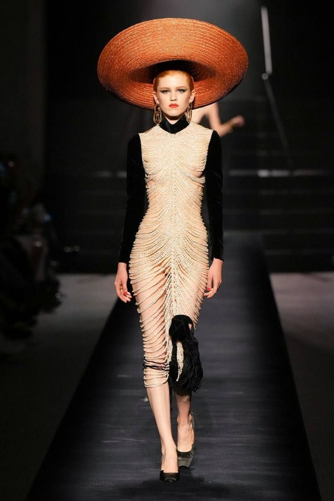 Креативный директор Schiaparelli Дэниел Роузберри в этот раз меньше внимания уделили золотым элементам и переключился на цветы. Они украсили жакеты, сумки, превратились в бра. Главными деталями кутюрной коллекции стали широкополые шляпы: от сдержанных вариаций канотье до украшенных перьями и птицами, и корсеты, открывающие грудь. Не обошлось и и без обращения к телесности — на этот за нее отвечали сердца на платьях и в виде украшений.