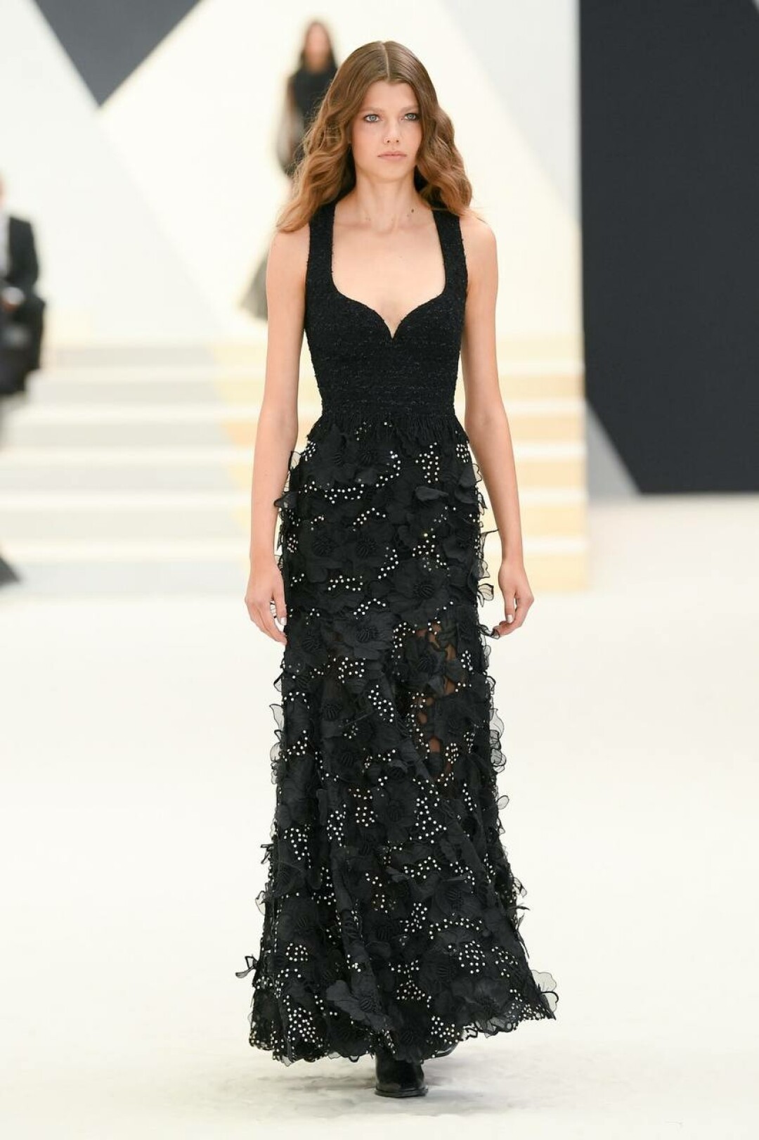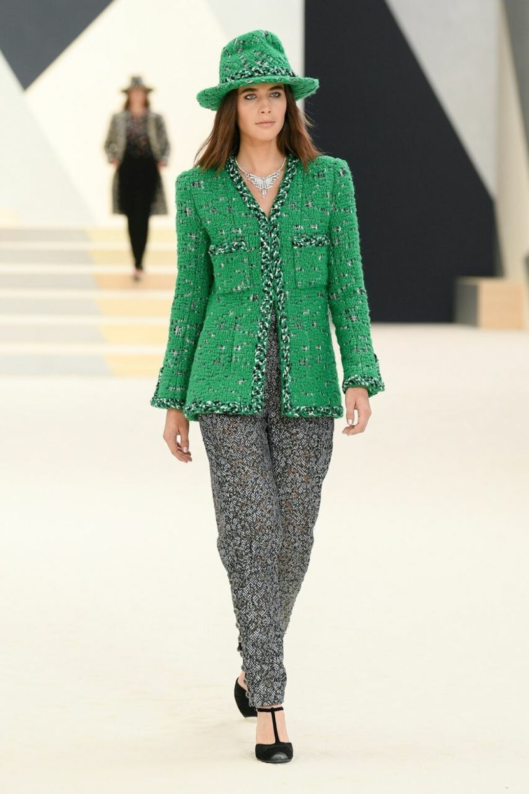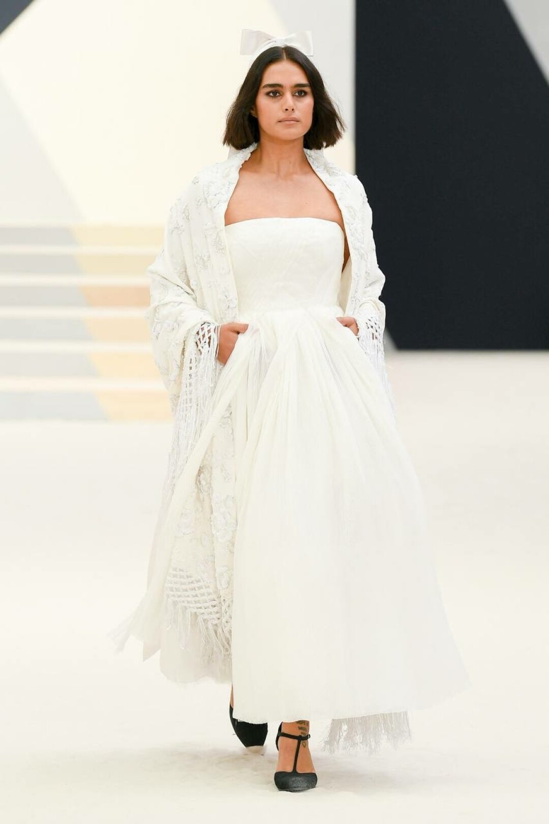 Модный дом Chanel провел шоу в Париже, на котором представил новую кутюрную коллекцию авторства креативного директора модного дома Виржини Виар. Главенствует в ней твид, из которого созданы не только жакеты и юбки, но и головные уборы. Так в коллекции Couture осень-зима 2022-2023 много шляп, дополнивших образы. Еще среди аксессуаров — банты, вплетенные в волосы. Аналогичный украсил и образ невесты, в котором закрыла показ плюс-сайз-модель Джилл Кортлев.
