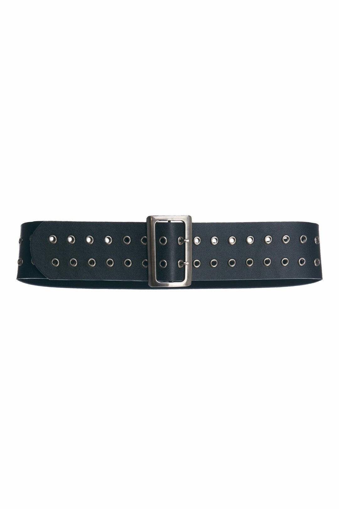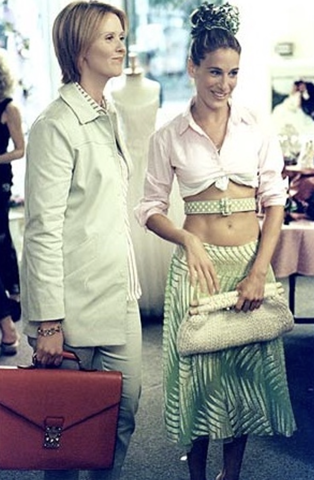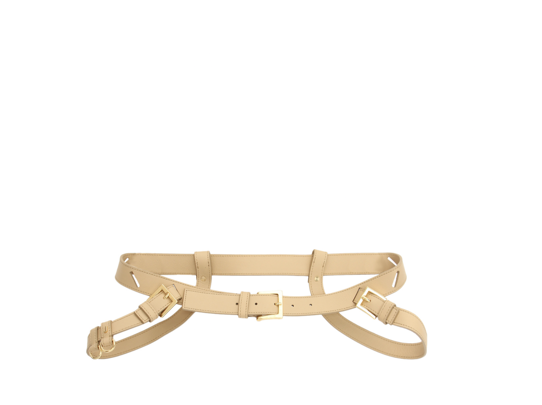 Увлечение ремнями все оттуда же — из нулевых. Тренд на эстетику 2000-ых вернул из небытия не только экстремально низкую посадку, мини, сочетание платья и брюк, платформы, но и ремни. Образы it-героинь того времени, например, Бритни Спирс или Кристины Агилеры почти всегда дополнял этот аксессуар, чаще всего с массивной пряжкой. Кроме того, ремни были классным инструментом стилизации образа. Их носили привычным способом — на бедрах или талии, а также нетривиальным — на ребрах и даже груди, заменив ремнем топ.