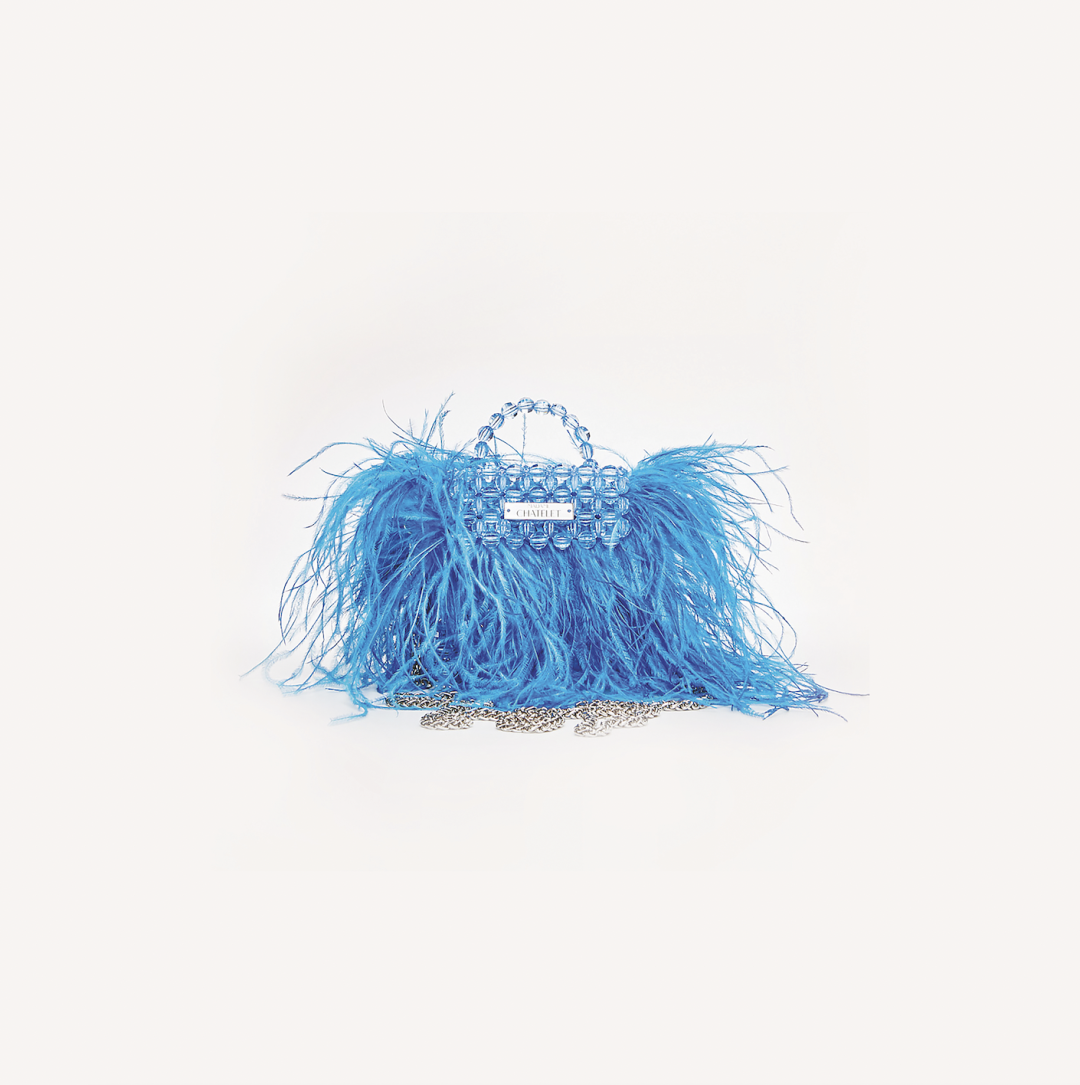 Теперь мы точно знаем, что такое чудо в перьях — это сумка русского бренда Мadame Сhatelet, которая похожа на любимого домашнего питомца. Еще бы! Ручка из бисера, небесно-голубые страусиные перья — вот ты уже и нарядный.