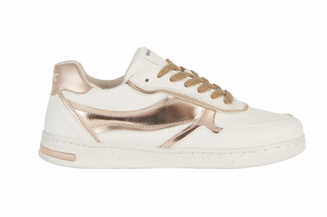 Хотя кеды из осенне-зимней коллекции Geoх и взгромоздились на высокую подошву, дожди им итак нипочем: экофрендли пара с золотыми вставками оснащена фирменной водооталкивающей мембраной.