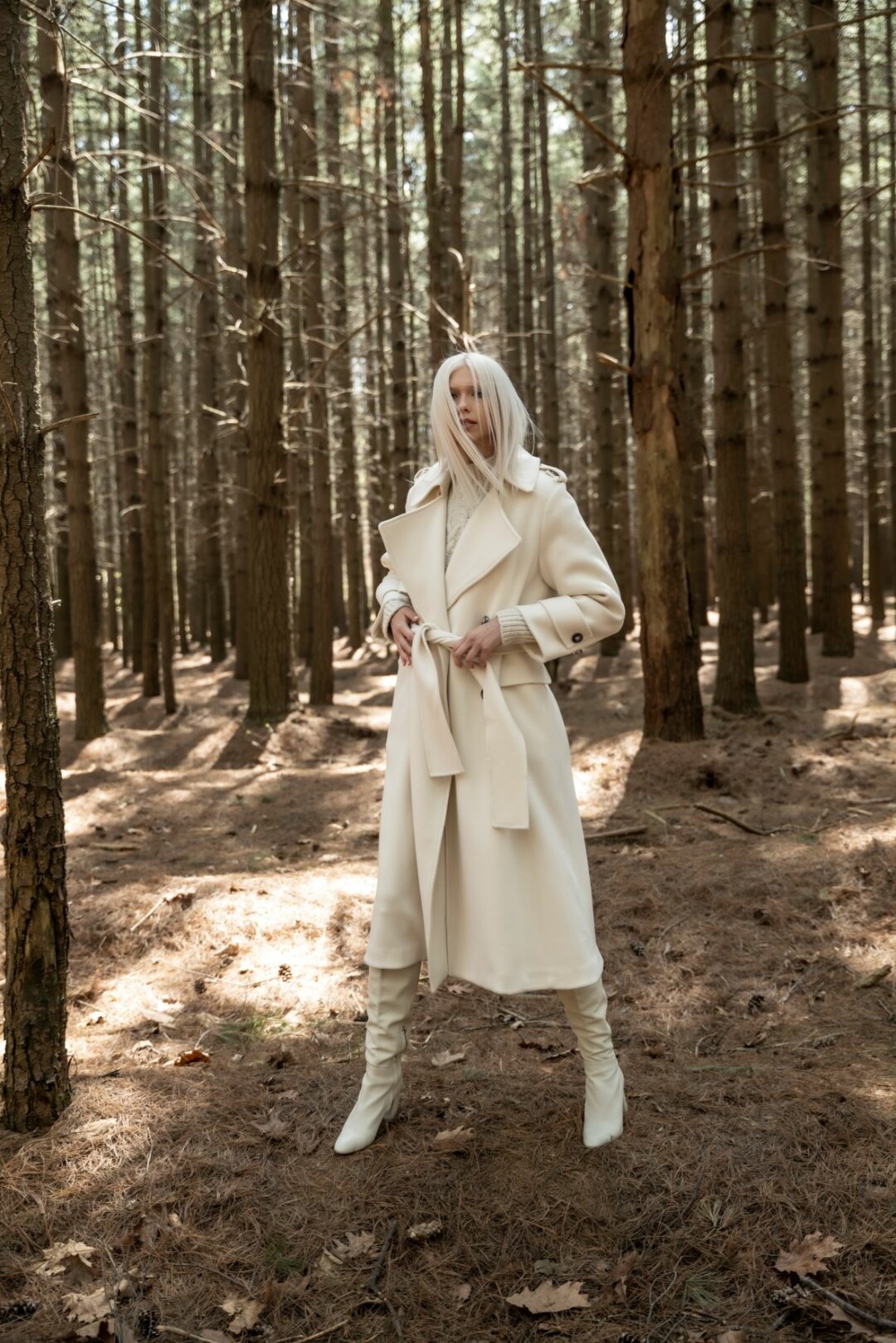 тут выхожу я — весь в белом! Реализовать этот эпичный план помогли дизайнеры DIEGO M: молочного цвета оверсайзовое пальтотренч будем носить с сапогами и платьями сливочных оттенков.