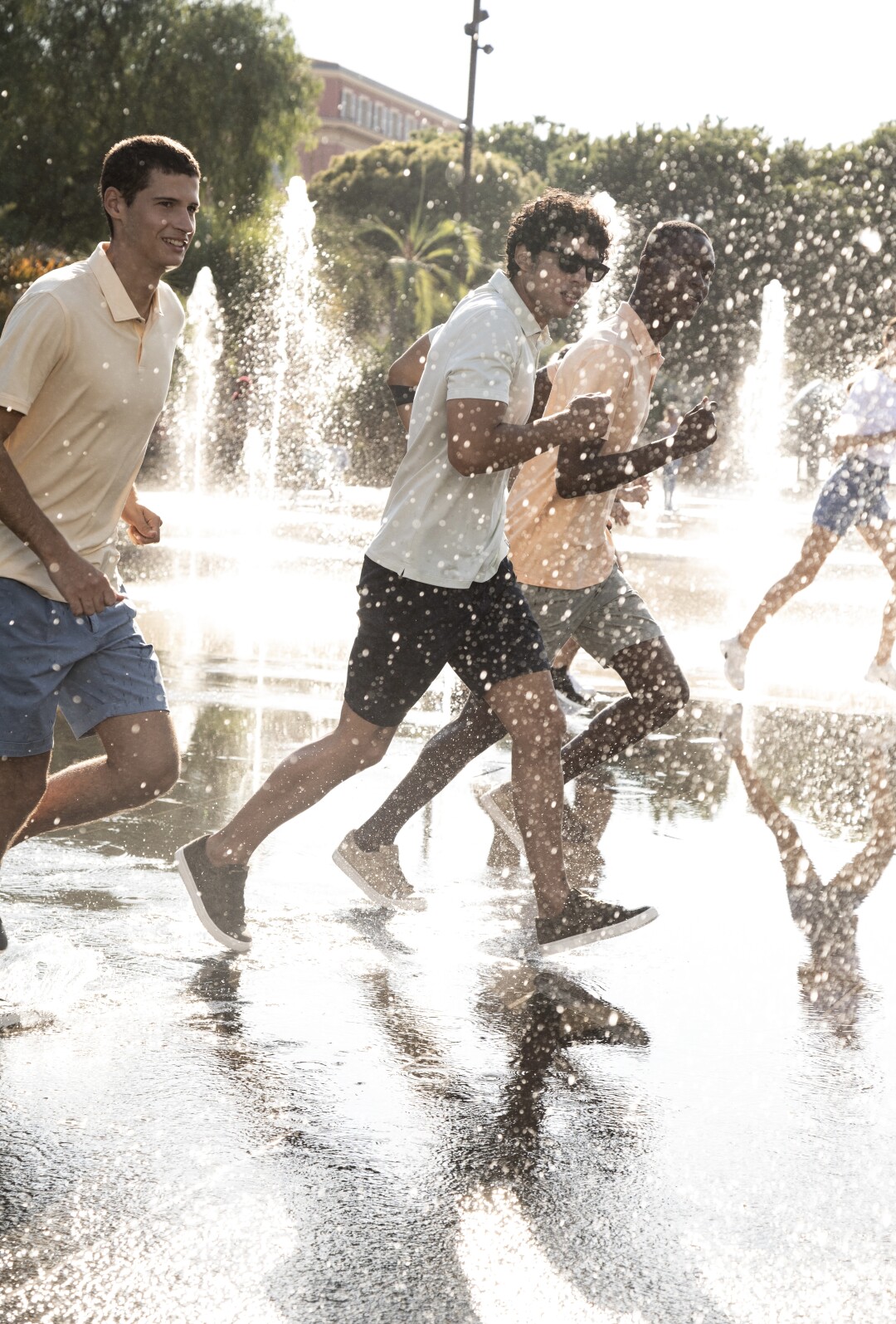 Униформа для пробежек по петергофскому фонтанушутихе нашлась в новой коллекции итальянской марки Boggi Milano. Сочетаем конфетное поло (экоткань из кофейной гущи быстро высыхает) и шорты-бермуды, садимся на «Метеор» и отправляемся на прогулку по Нижнему парку.