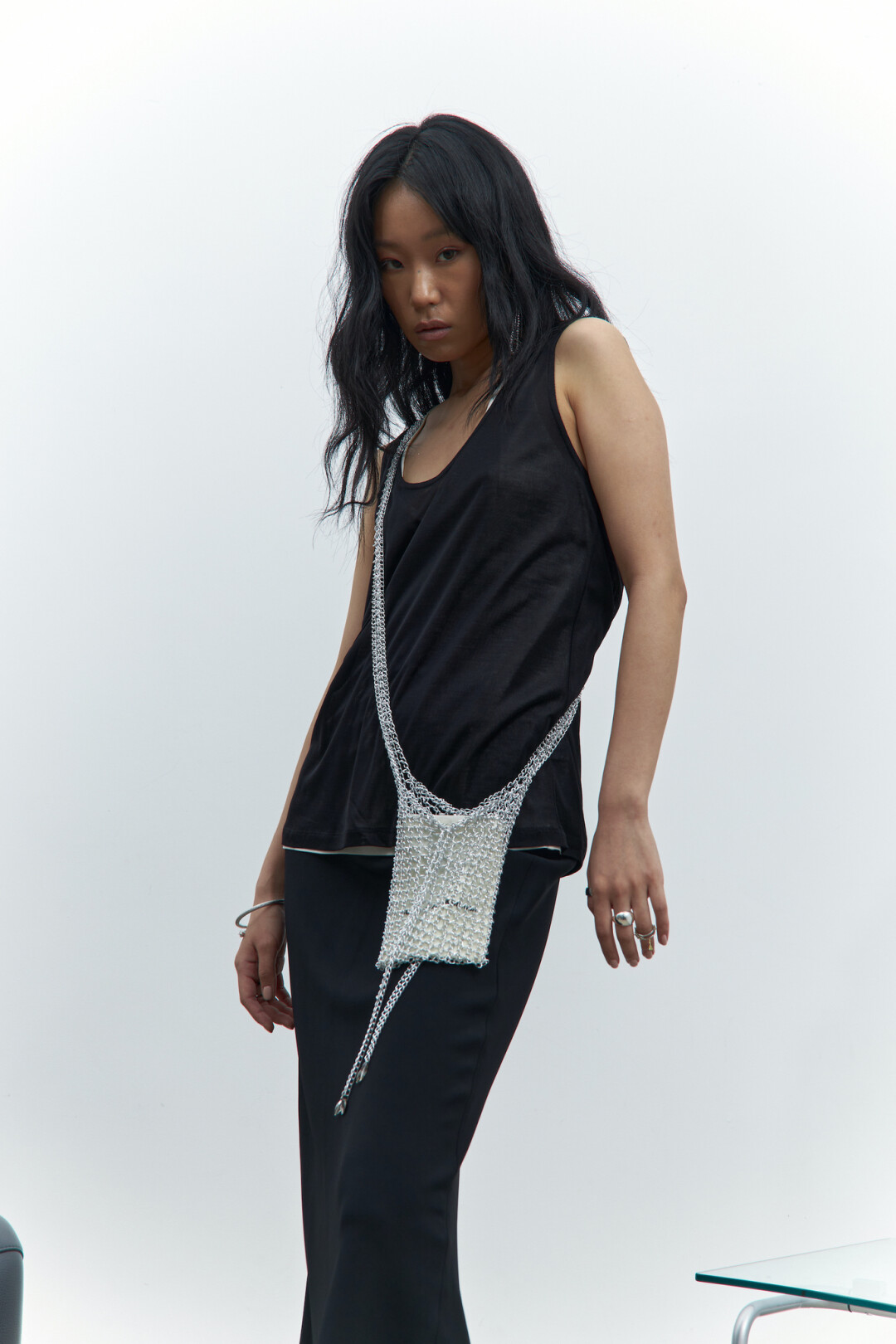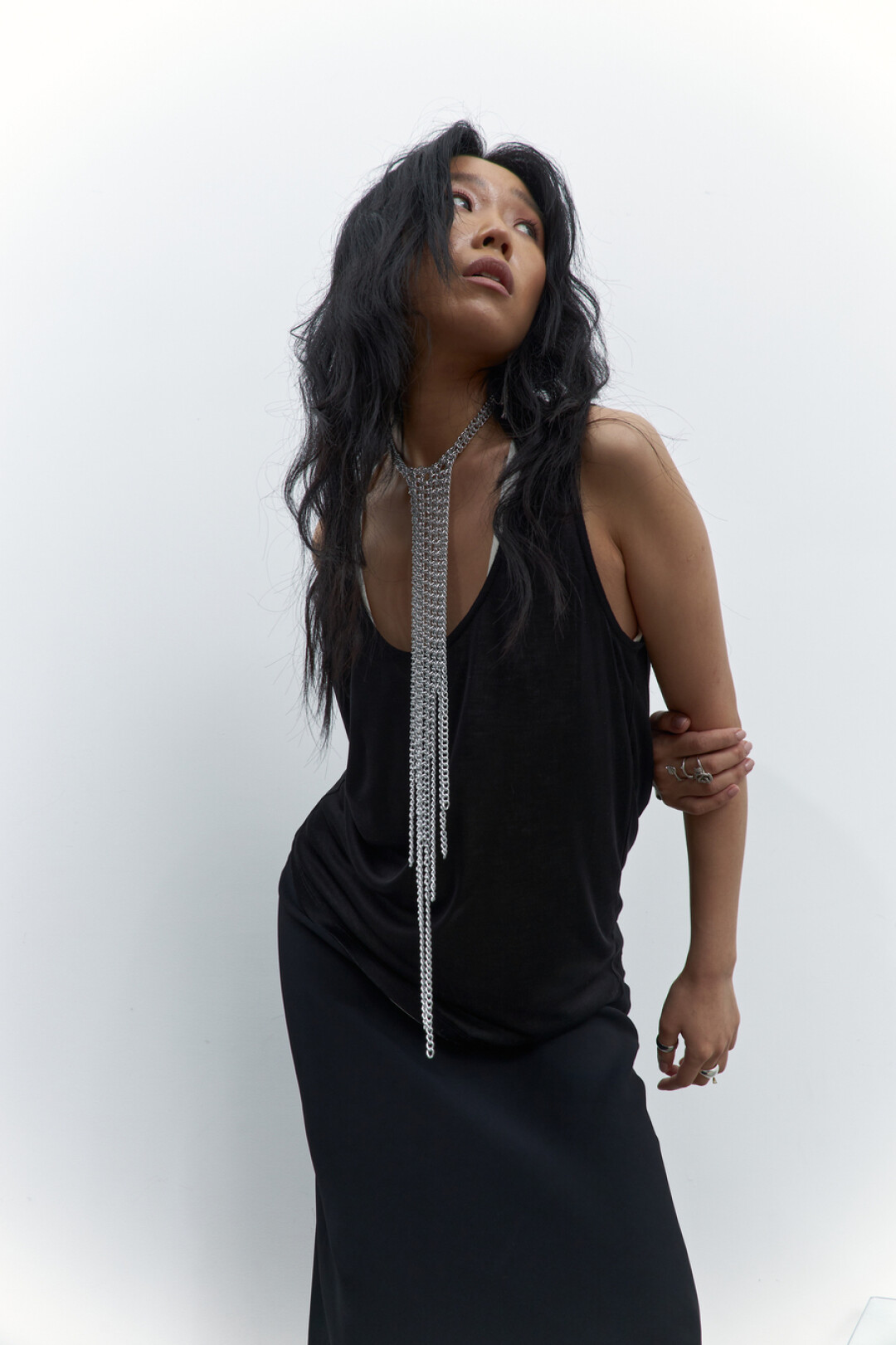Локальный концепт-стор Subbota и бренд украшений для тела Nevoda выпустили металлическую мини-коллекцию: цепной шарф, сумку-мешочек с железной хваткой и галстук металлиста для важных переговоров. Выбираем полюбившийся айтем и отказываемся от всех остальных украшений — цепи все сделают за нас.