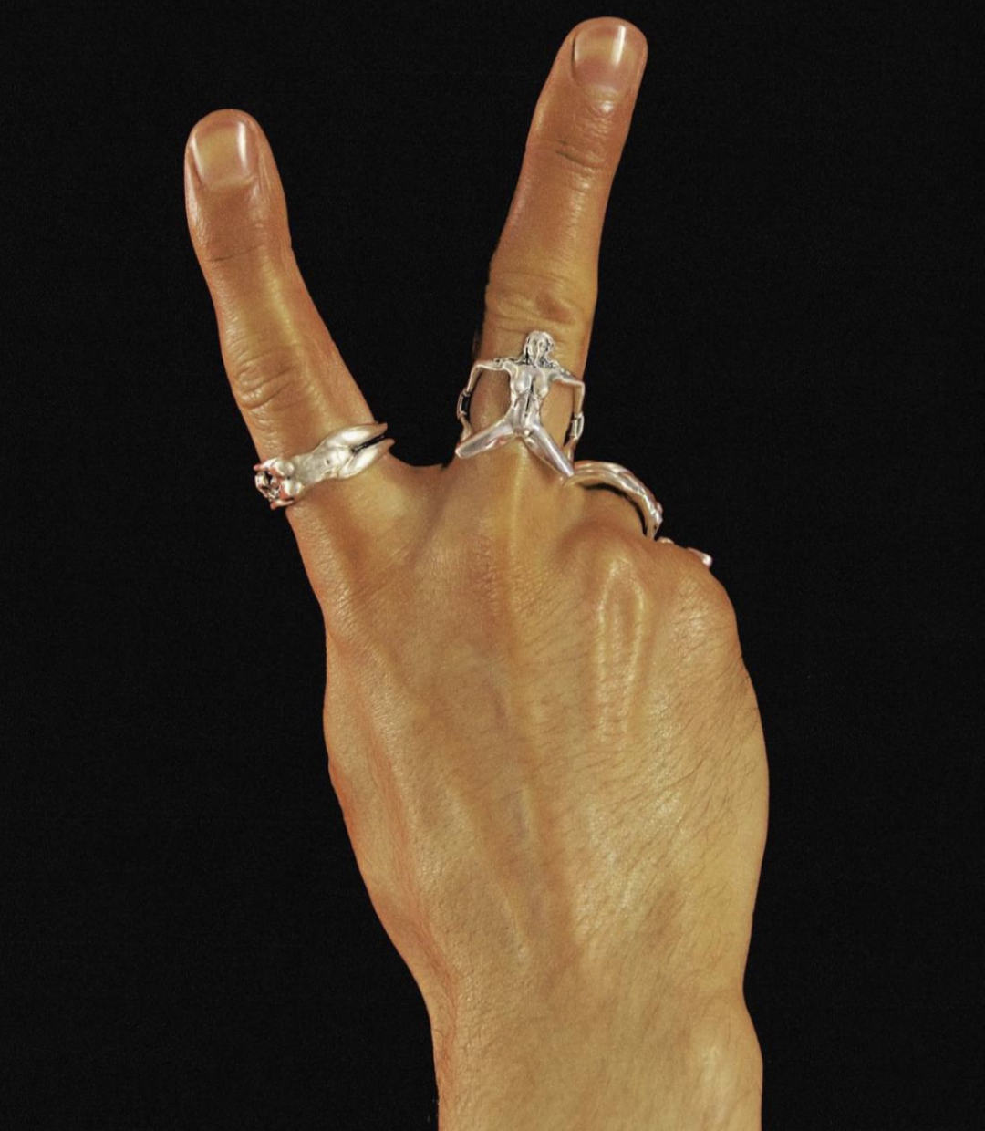 Смотрите, какой пугающе горячий коллаб получился у двух петербургских марок панк-стритвир STENO515 и ювелирной MOZI J. Наши абсолютные фавориты – перверсивные кольца-скульптуры Maria и Node и мрачный браслет Blast off про девушку и смерть.