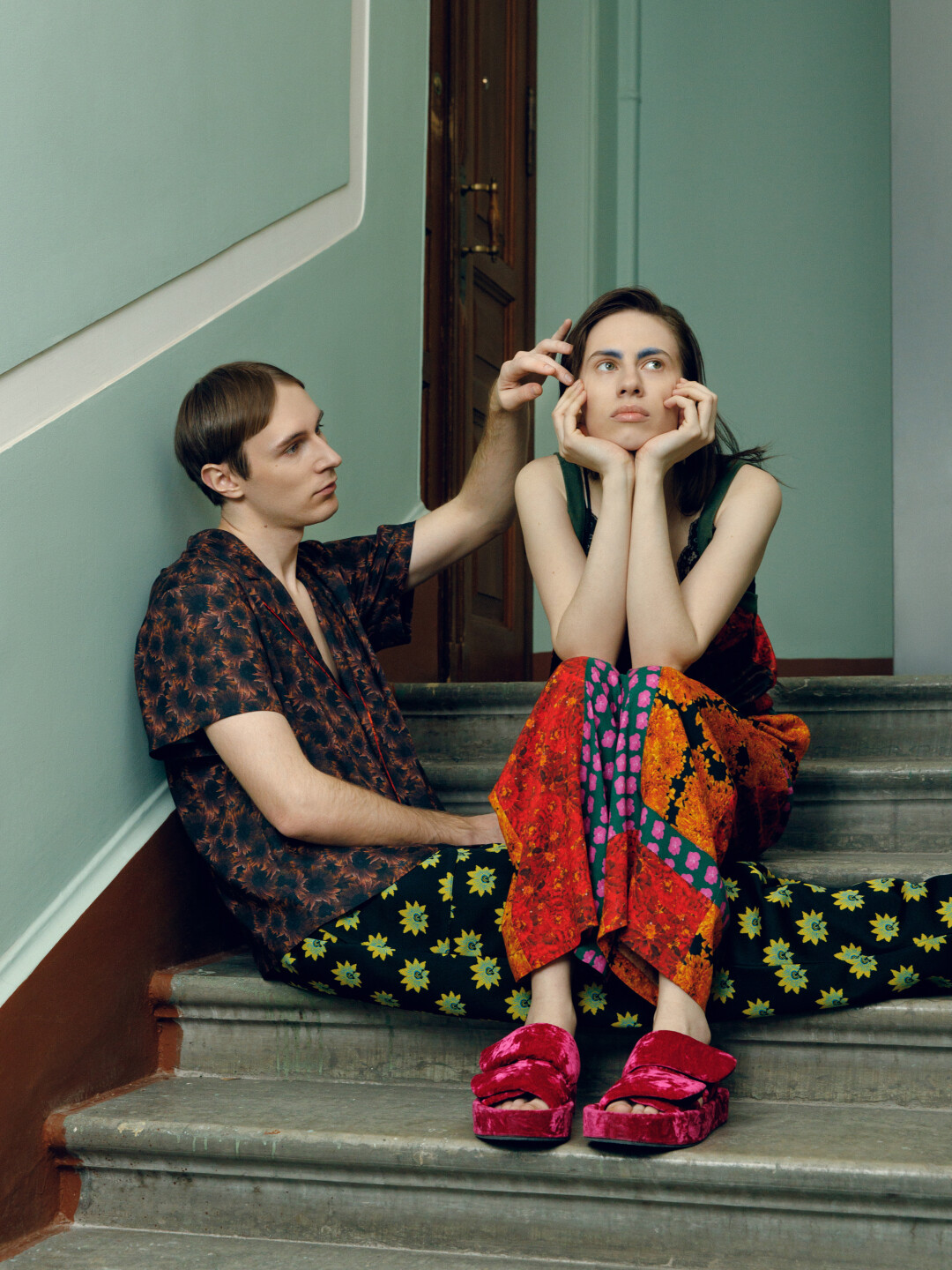 Антуриумы Loewe, тюльпаны и эустомы Prada – out, бархатцы и петунии Ola Ola – in. Фаундер самой задорной петербургской марки Оля Гинзбург собрала дачный фотогербарий и пустила его на принты новой коллекции FW23 (в продаже с сентября). Хотим утопать в анютиных глазках, пионах, петуниях и даже цветках цукини немедленно и до самой весны, как герои кампейна и лукбука, снятых стилистом Романом Крихели в парадке. К тому же, в ассортименте наконец-то завелся пуховик (в подсолнухах!).