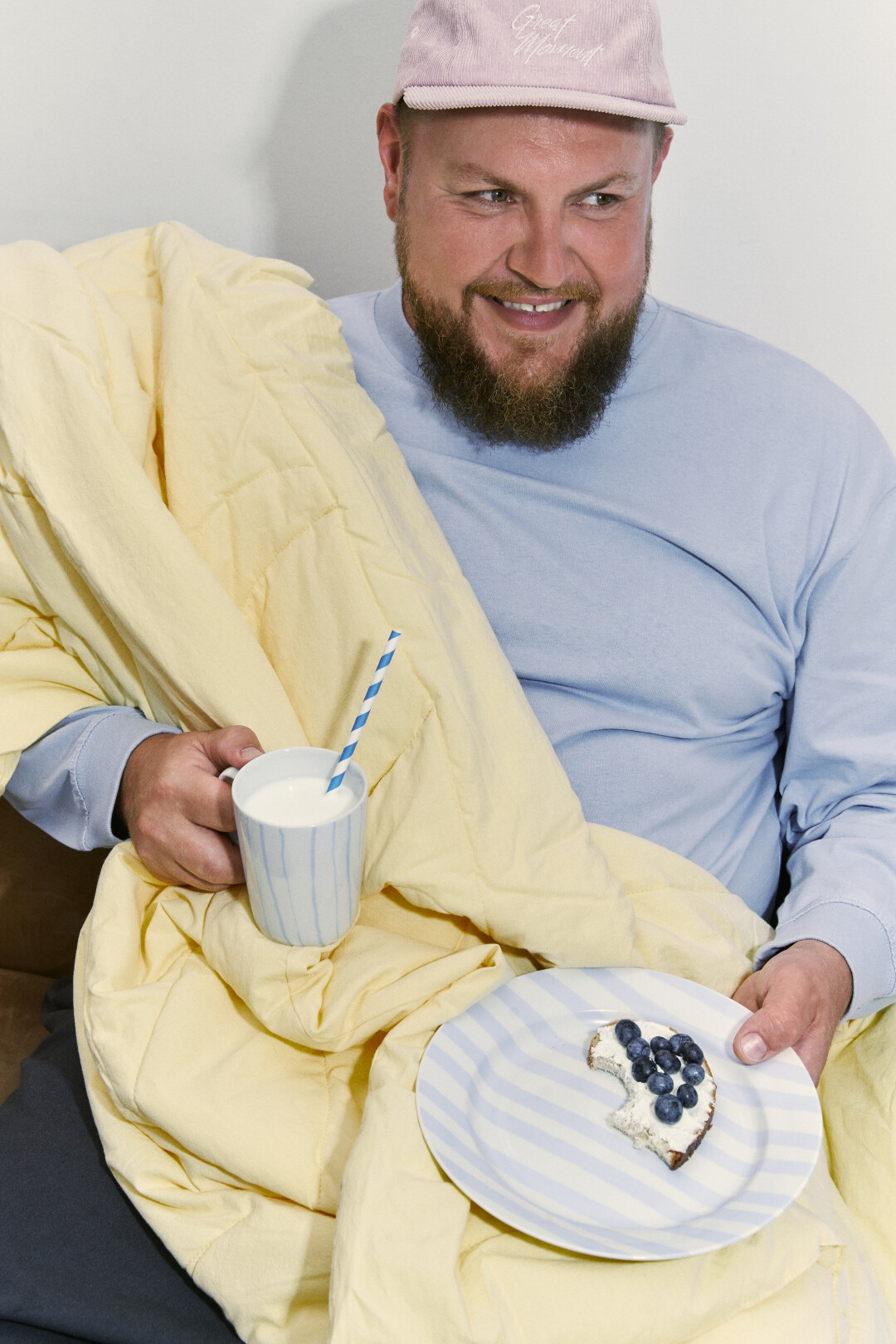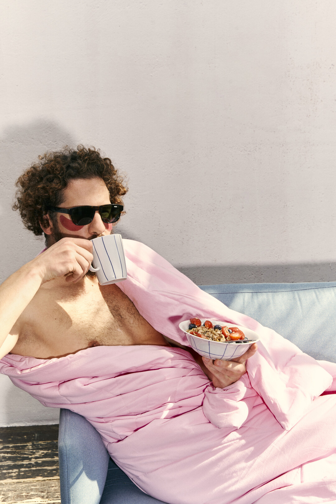 Больше гедонизма богам гедонизма: спецы по самым уютным пододеяльникам и подушкам MRФS в дуэте с керамистами «Дома высокой культуры быта» (DVKB) создали посуду для завтраков и ночных перекусов в кровати. Получились клетчатые пиалы и полосатые чашки — пригодятся для острого приступа мыслей о Римской империи (и желания поесть лежа).