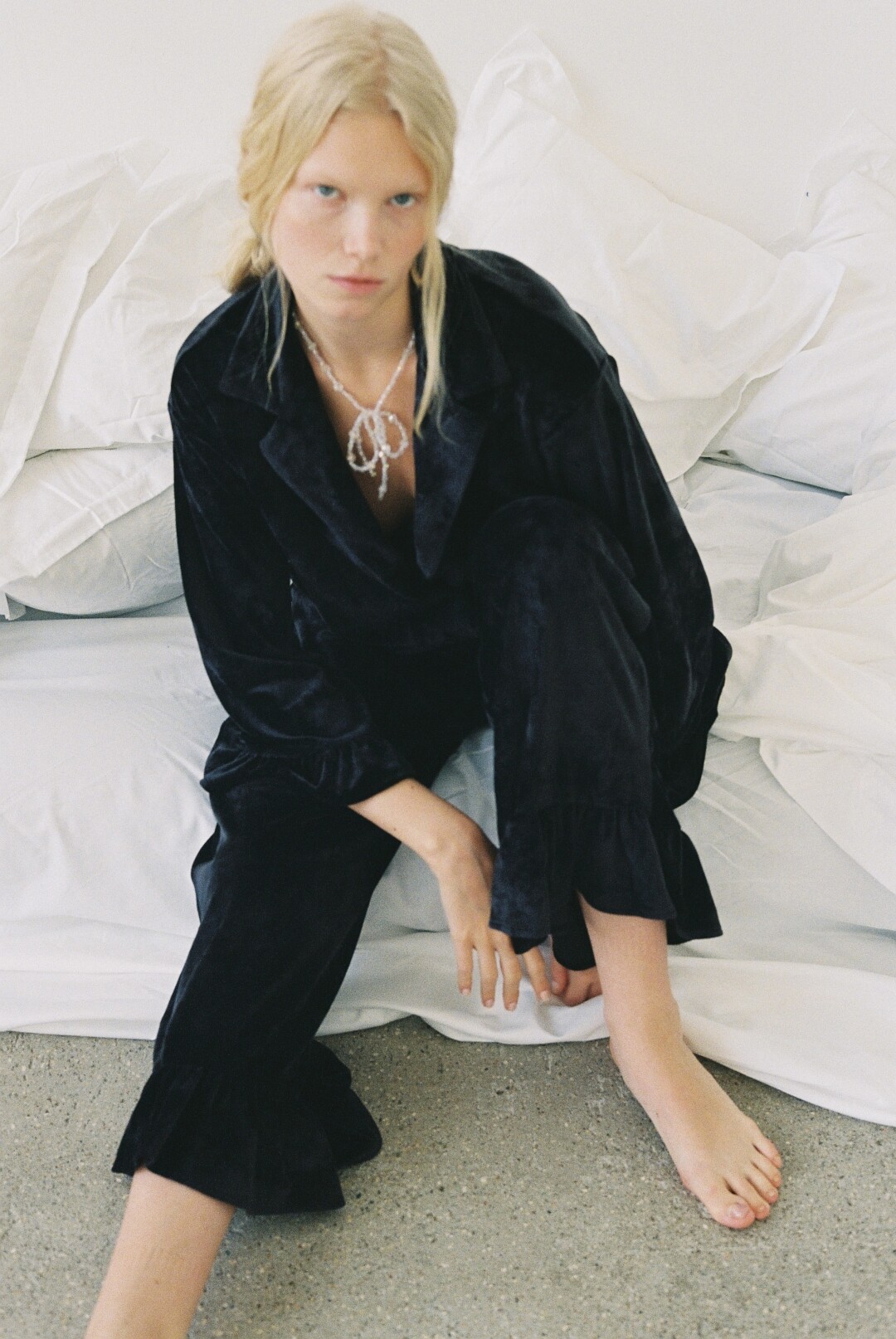 Наушники перекочевали с подиума Coperni в лукбук Chois — с их помощью прячемся от внешнего мира под тремя слоями одеяла в новой капсульной коллекции домашней одежды и нижнего белья. Наводим спальный уют при помощи мягких чепчиков, пижамных комплектов (с перышками и без) и полупрозрачных бра — идеальный тотал-лук для подушечного сражения и субботнего послеобеденного завтрака.