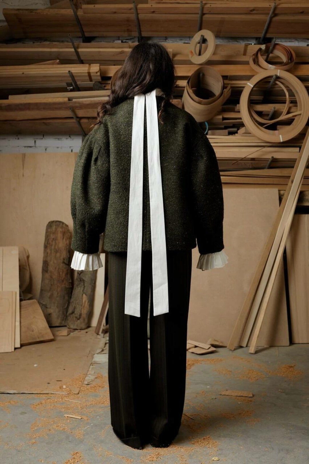 Сказочно-былинные романтики из «Остров имени тебя» в осенней коллекции «я такое дерево» обращаются к воспоминаниям, связанным с деревьями, и дарят им вторую жизнь в одежде кампейна, снятого в столярной мастерской. Ключевые вещи — шерстяная шапка-забрало «Кленовый лист», пончо «Плакучая ива» из двусторонней шерсти и рубашка «Папа Карло» с плиссированными манжетами и длинными лентами-веточками (для подглядывания за миром из-под верхней одежды).