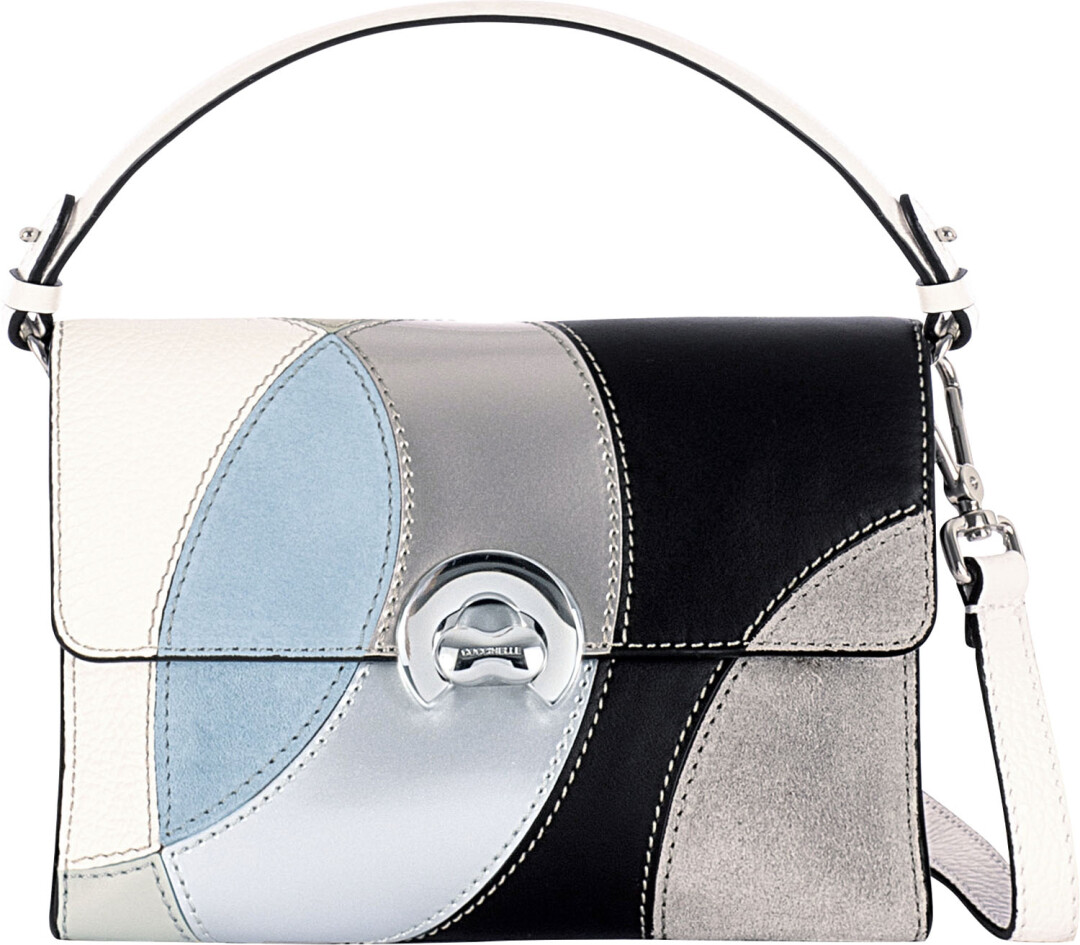 Двадцатые — новые нулевые, проверено Coccinelle: носим угольно-пастельный колорблок Сoccinelle Binxie на длинном ремешке и храним телефон, паспорт и кардхолдер под брендированным замком (кульминационная деталь новой линейки!). Мэтчим мини-сумки с деконструктивистскими драпировками и фактурными жатыми топами.