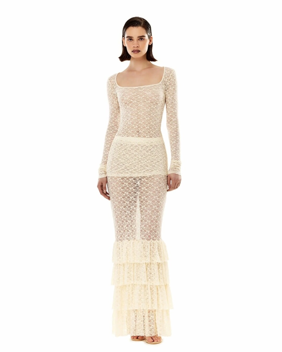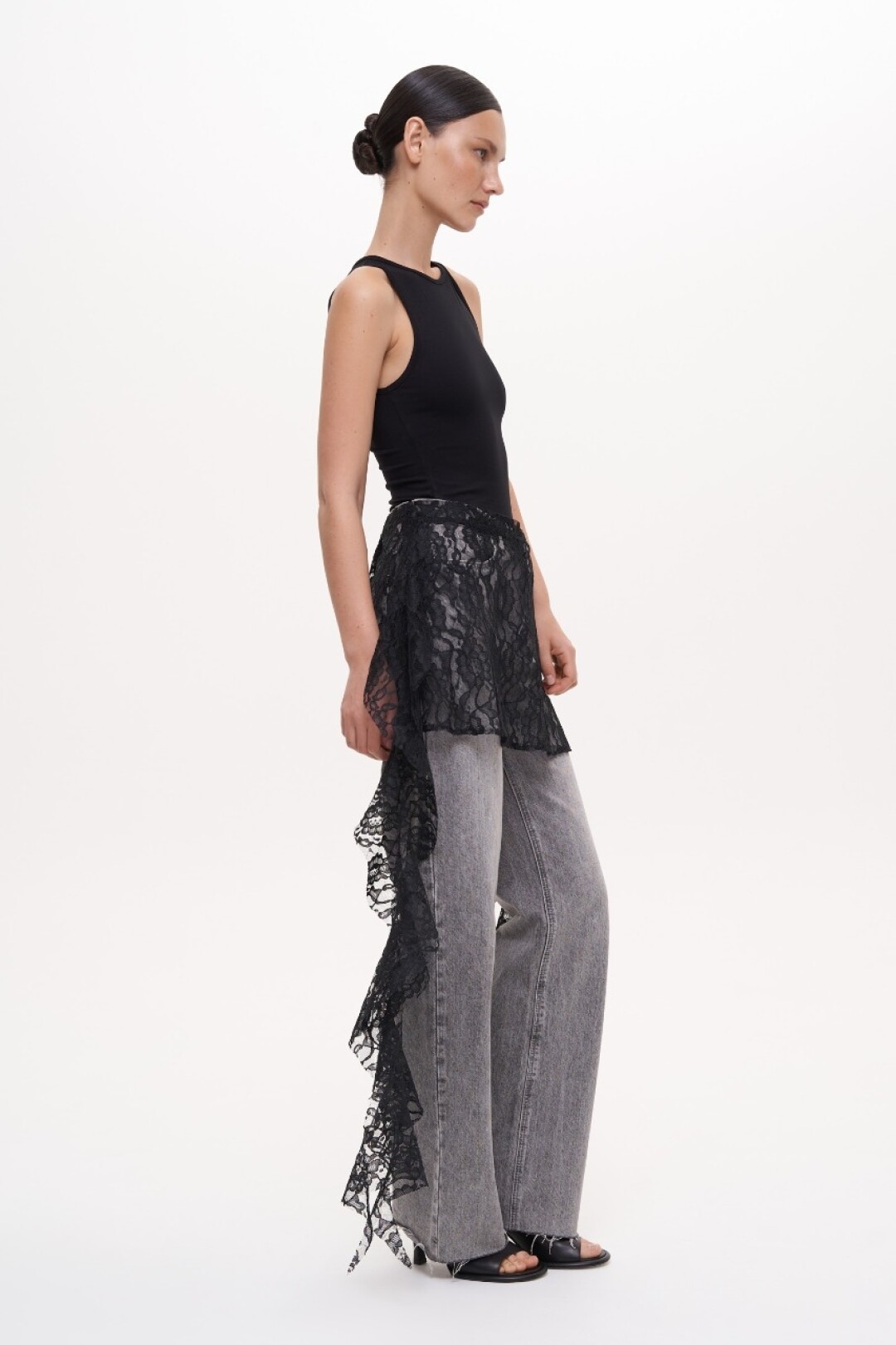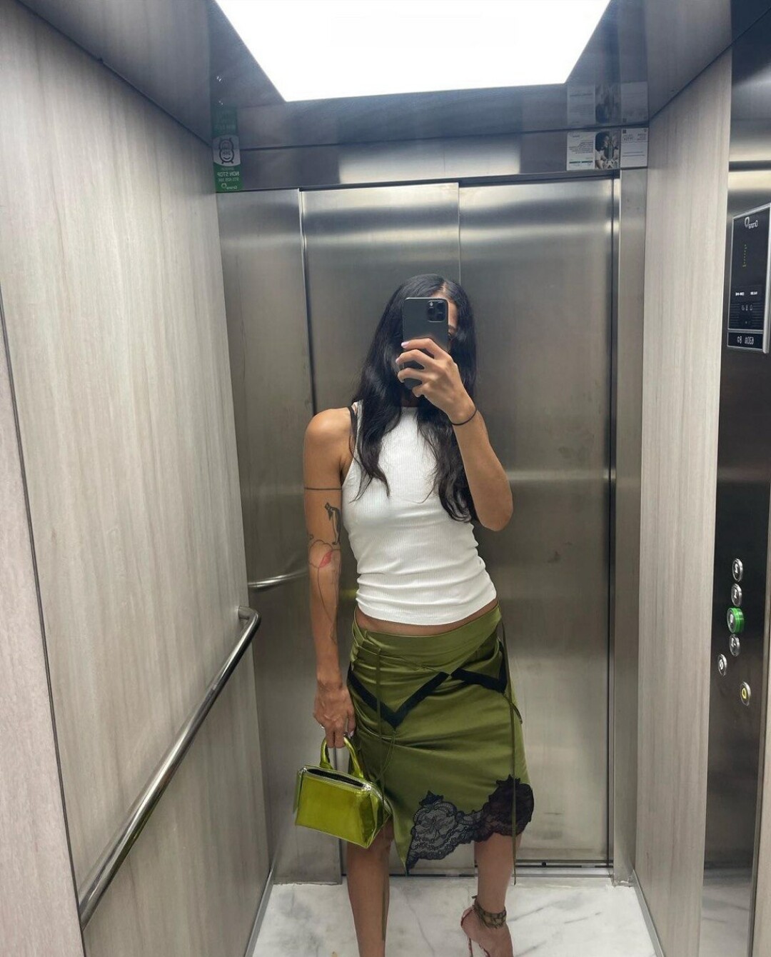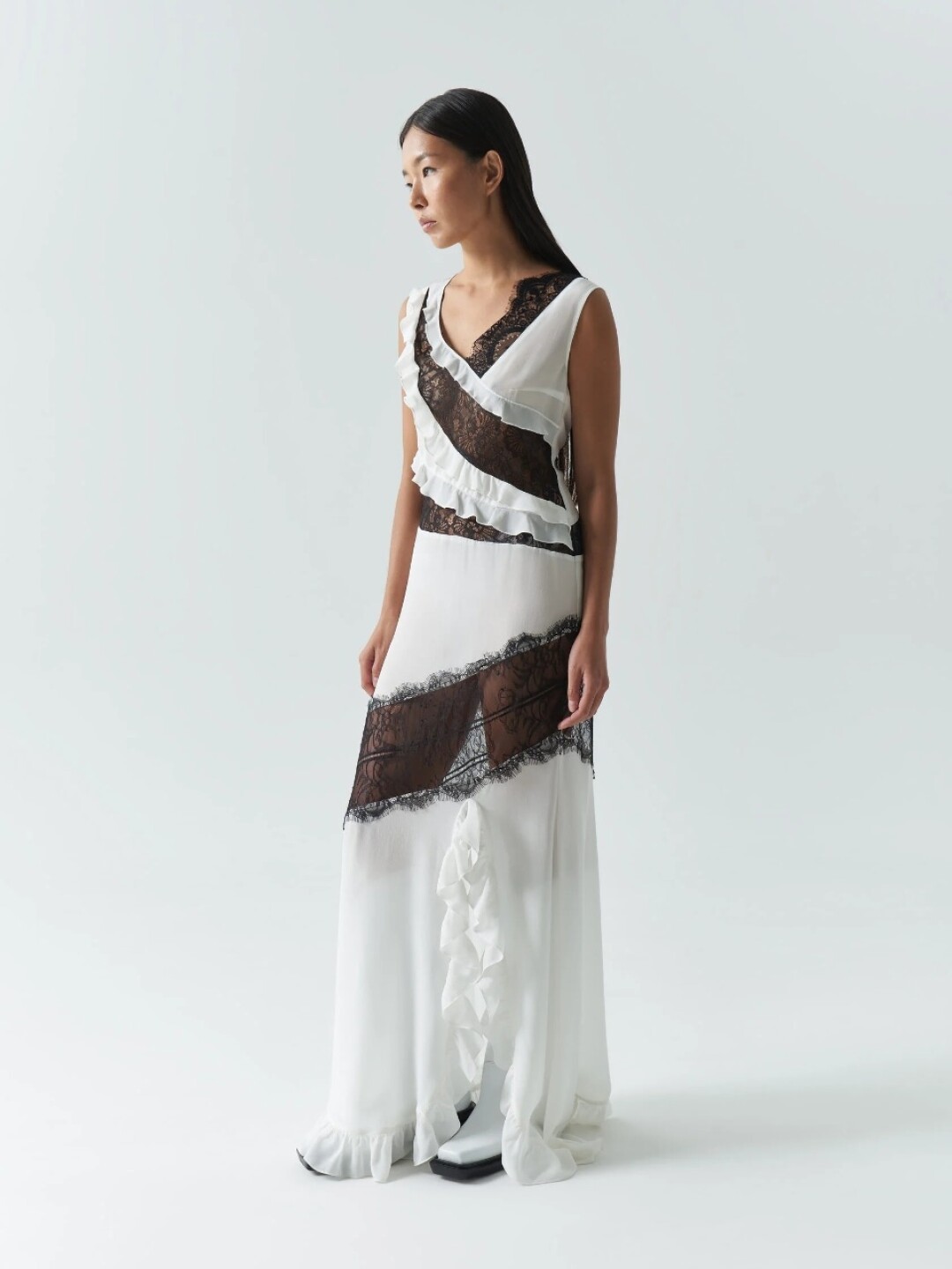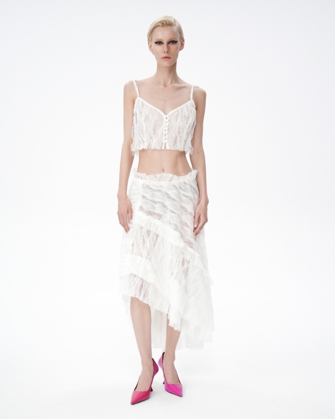 По примеру Жанны Дамас практикуем casual chic и миксуем ажурное боди с джинсами-буткатами и босоножками. Инфлюэнсер Мадлен Педерсен осваивает тренд платье + брюки, а дизайнер The Attico Джильда Амбросио — деконструктивизм и трансформирует комбинацию в юбку. Во главе с Джен Себаллос и Деборой Роса предчувствуем бум белого кружева и закупаемся ажурными юбками и платьями заранее.