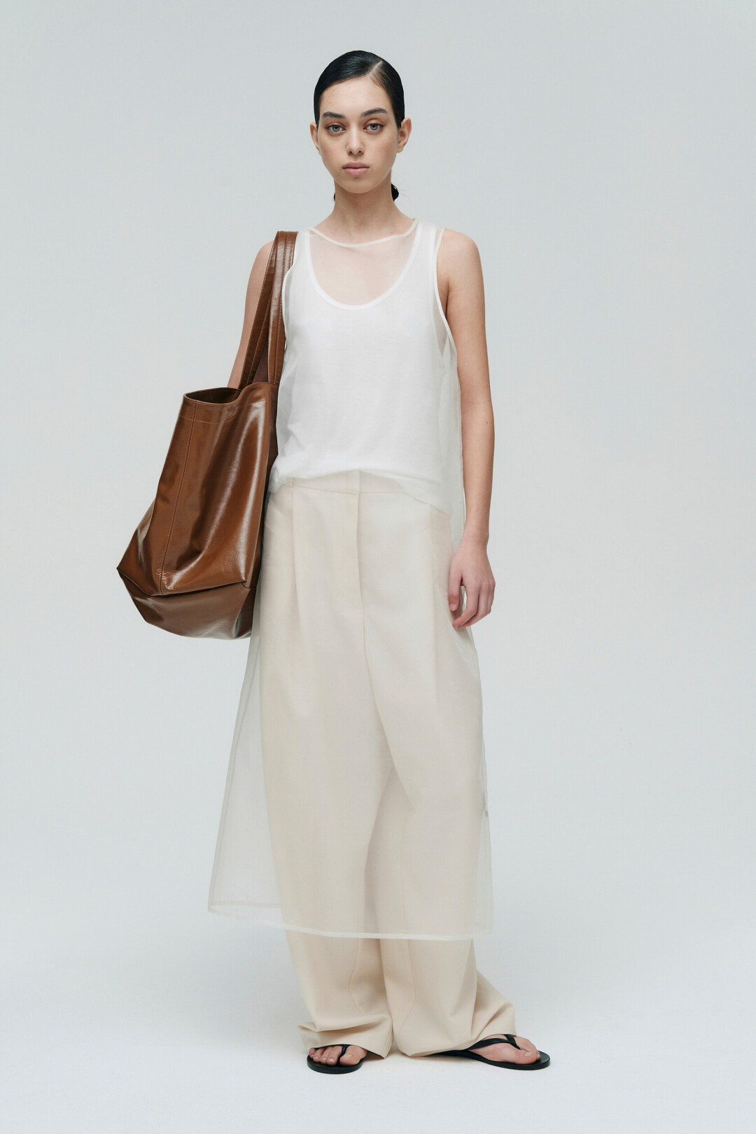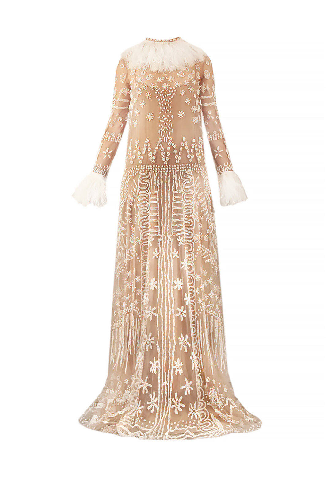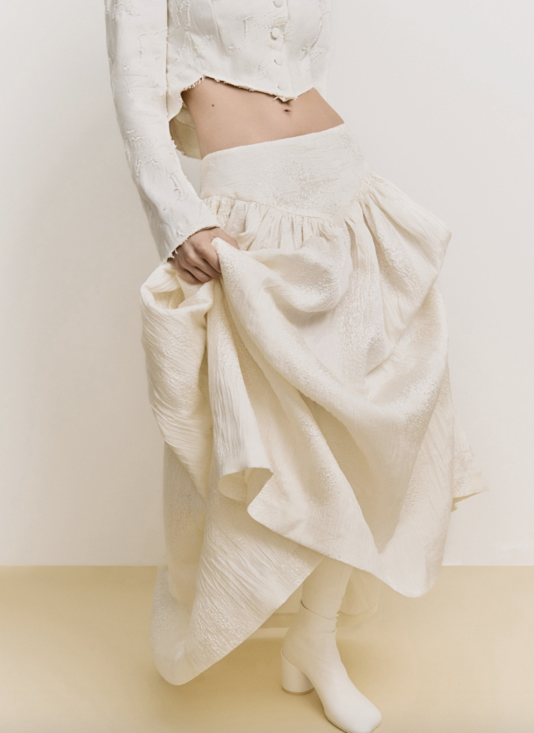 Прошлогодний роялкорный шелк с версальского показа Jacquemus уступил место полупрозрачной шелковой органзе, в которую индустрия переоделась под влиянием невесомых платьев-медуз с миланского шоу Prada (такие уже примерили it-girl мировой киноиндустрии Хантер Шафер и светская гранд-дама Снежанна Георгиева). Поддерживаем российских локалов и присматриваемся к воздушному платью M_U_R с меховой опушкой на подоле либо примеряем белоснежные пелерины Le Pompon (кейп — важный тренд кутюрной недели!) вместе с юбками-орхидеями Rejo.
