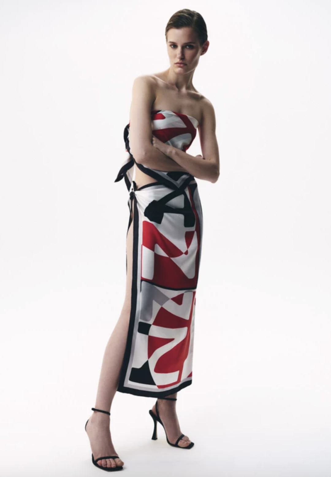 Для рубрики «коллекционный лот» нашли винтажное платье Valentino с весенне-летнего показа 2016 года — стоит как двухнедельный отпуск на море. Плюс забираем с ресейла шелковый костюм Christian Dior в оттенке космического серебра и полупрозрачную блузу Rebecca Tailor с неброским лео-градиентом. Помимо платьев и брючно-юбочных комплектов присматриваемся к шелковым платкам (есть у Carlo Visintini, Eleganzza и RxBshoes), которые этим летом могут пригодиться в роли банданы, топа или юбки.