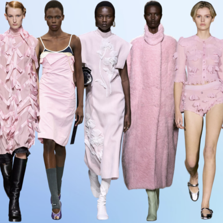 Отказываемся от ядовитой барби-фуксии из сценических нарядов Марго Робби в пользу приглушенного розового (в цвет жевательной резинки!), покорившего подиум Miu Miu и Alaïa и ставшего важным ингредиентом модных (и даже авангардных!) луков.