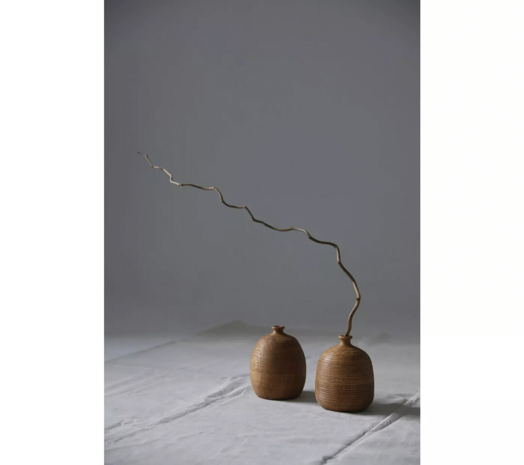 Минимал-дива Оксана Милковская открывает новые пределы медитативного хоум-детокса: вслед за идеальными шелковыми пижамами Maison выпустила деревянные джапанди-вазы с эффектом обжига по мотивам средневековой этидзэн-керамики.