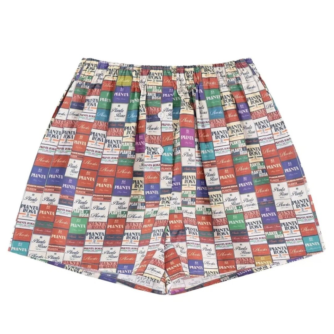 Идеологи Planta Rosa Ибрагим Гатциев и Женя Павлин подготовили классный пижамный дроп, для которого украсили рубашки и шорты поп-артовыми паттернами.