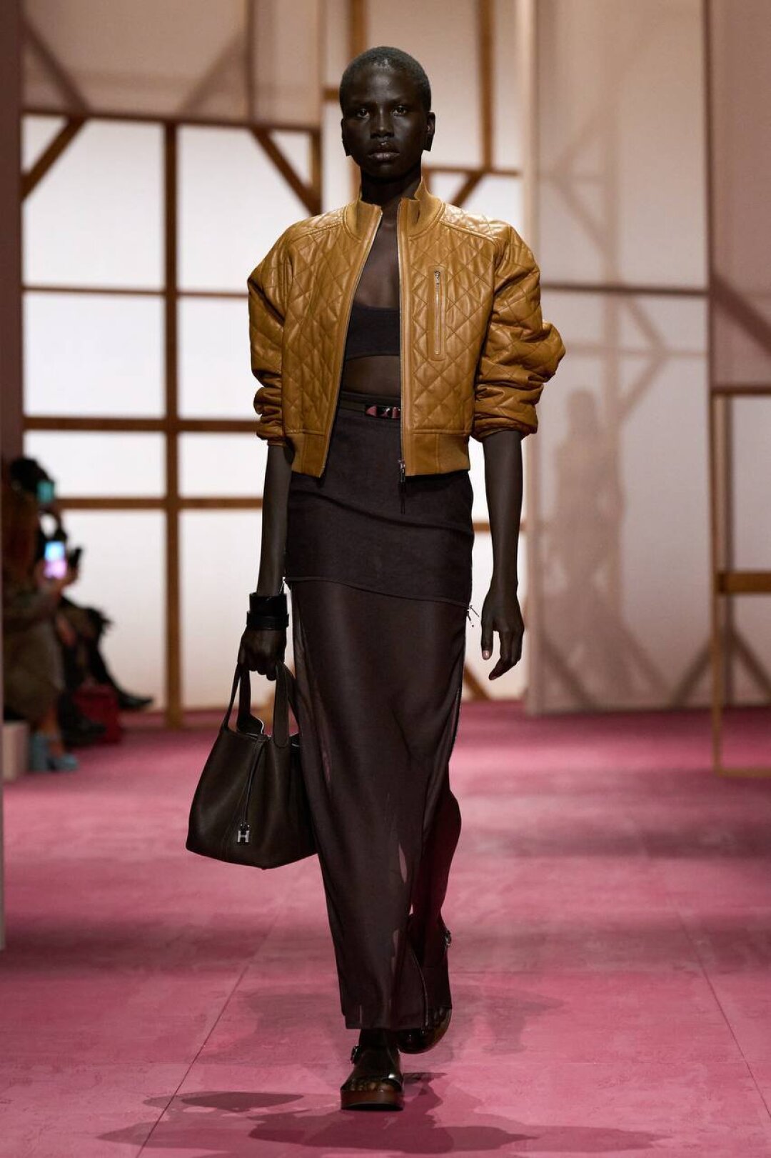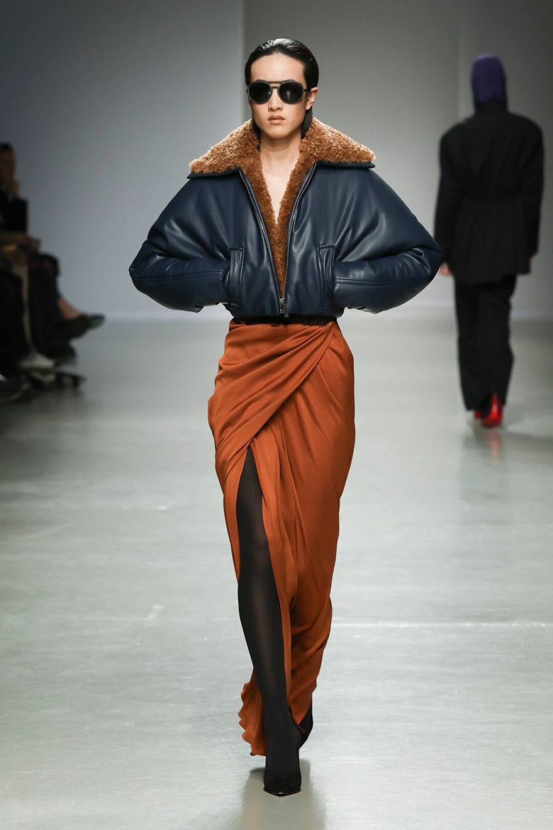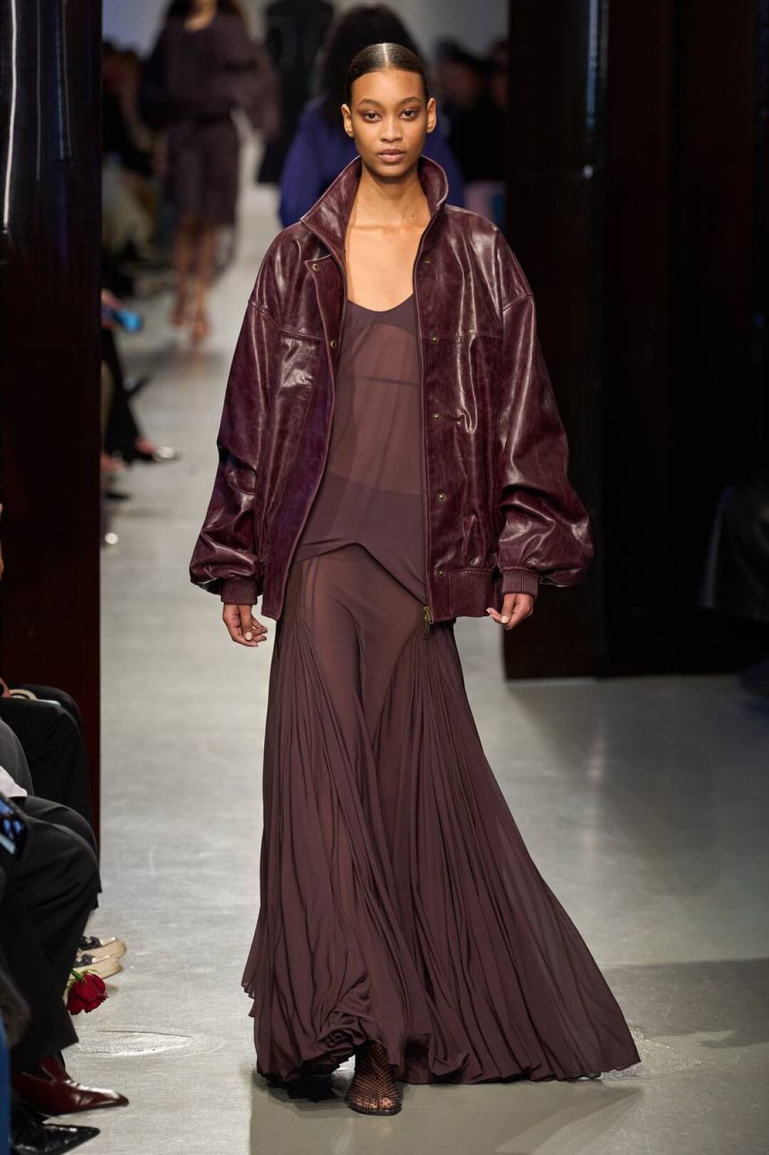 Отправной точкой стало шоу Saint Laurent SS'25 — Энтони Ваккарелло поженил батякорную кожанку с шифоновой бохо-юбкой. А позже — во время сезона FW'25 — вывернул стайлинг-прием на максимум с помощью все того же ретро-бомбера и нарочито нарядной юбки в пол, украшенной атласным бантом. Симон Порт Жакмюс в бренде имени себя подхватил тренд и сочинил образцовый «несвадебный» свадебный образ, сбив с пышной юбки торжественную спесь с помощью оверсайз-бомбера из той же ткани. Худруки Hermes и Christopher Esber сделали ставку на контраст не только стилей, но и фактур — плотной глянцевой кожи и прозрачного шифона. А Том Браун остался в рамках одной эстетики — преппи — но вместо ожидаемого тренча или пальто, завершил образ укороченным бомбером из замши в духе униформы студенческой футбольной команды.