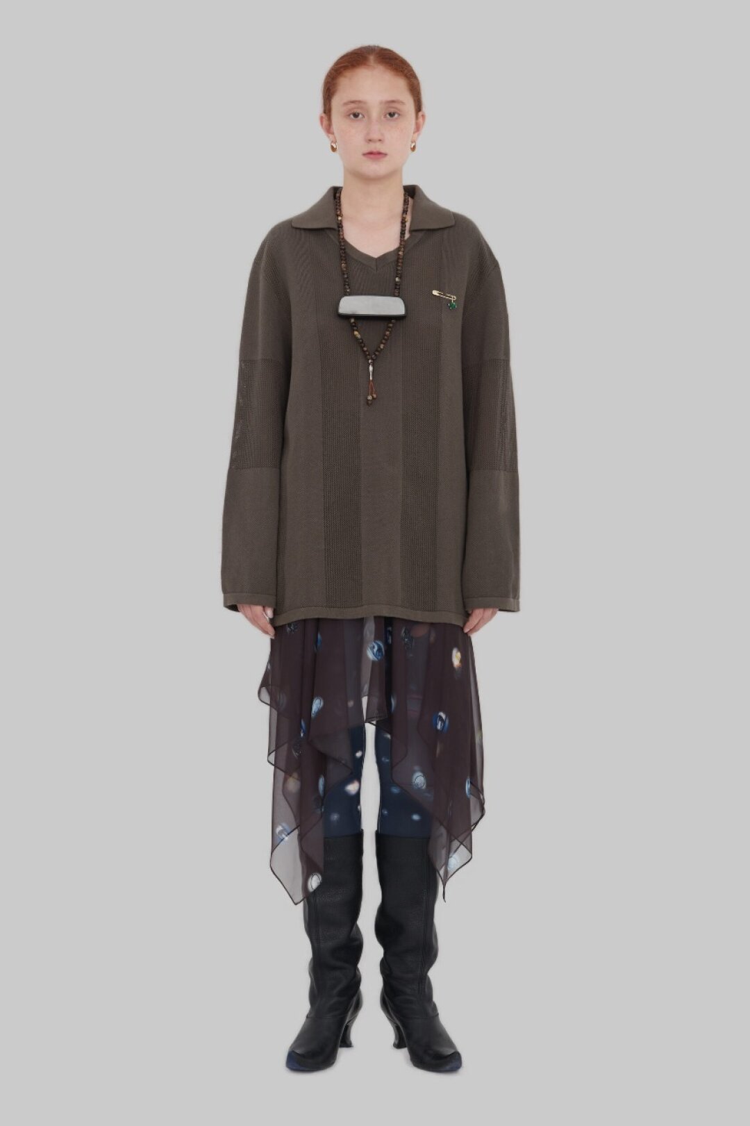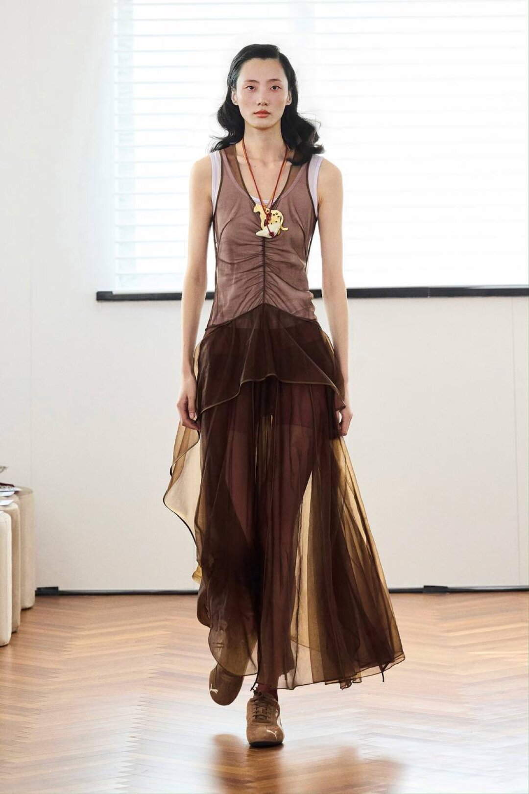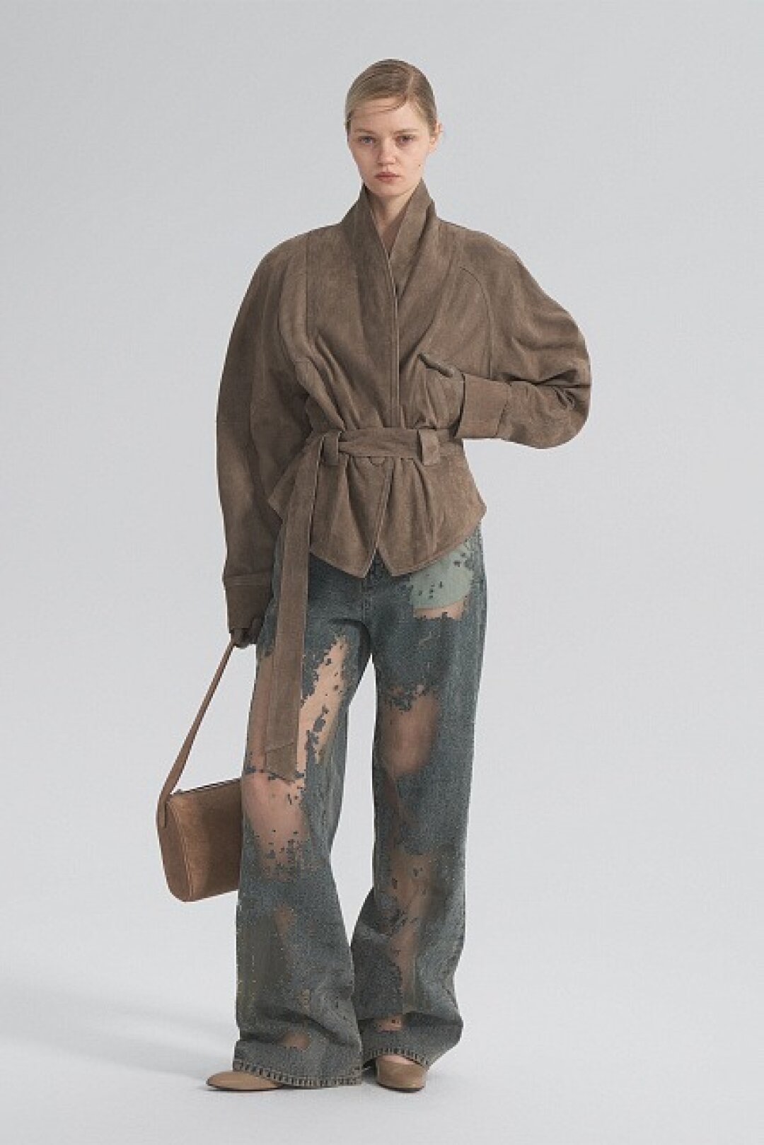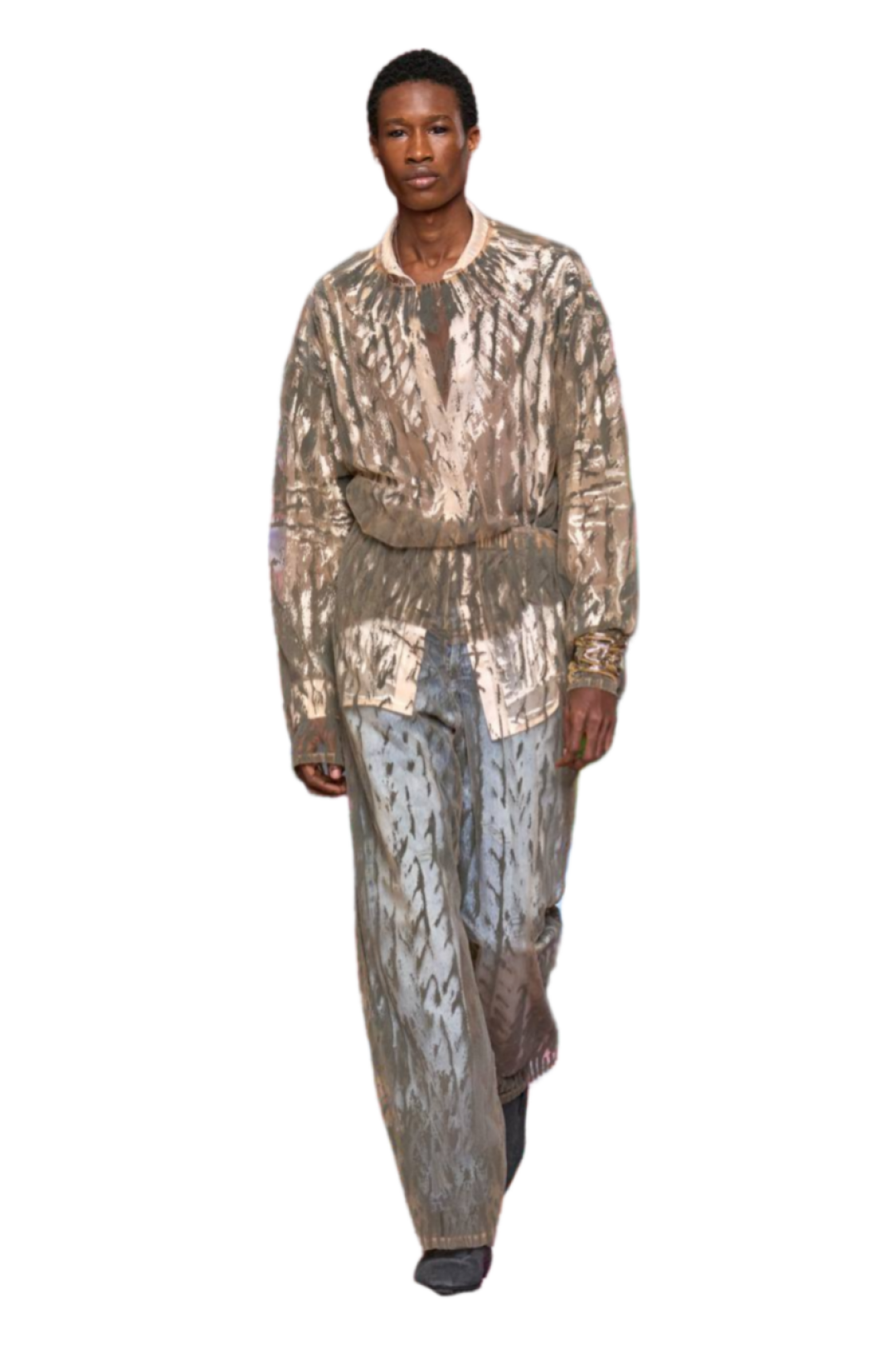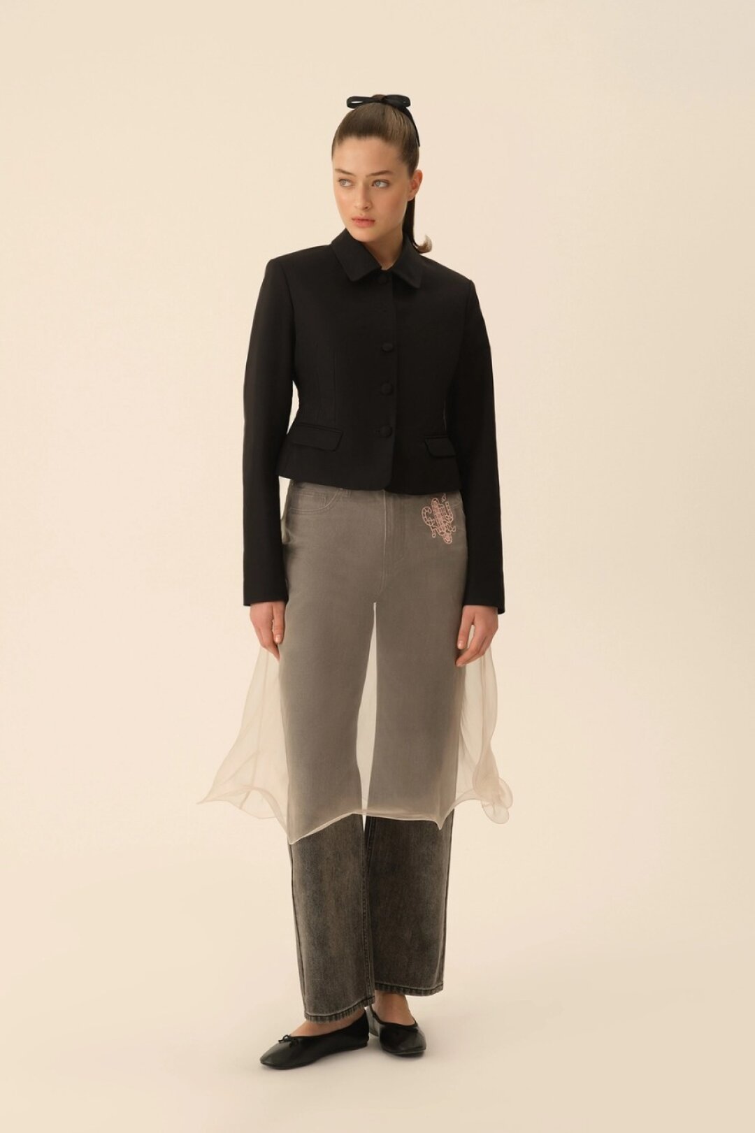 Комбо прозрачного низа и оверсайз-верха впервые засекли на фэшн-радарах после показа Saint Laurent FW'24 — Энтони Ваккарелло дополнил почти невидимые юбки-карандаши из тонкого трикотажа объемными шубами в оттенке черничного йогурта и плечистыми пальто в стиле power dressing. В этом году прием подхватили Altuzarra и Hodakova, которые предложили миксовать шифоновые юбки с массивной верхней одеждой — архитектурным пальто с пелериной или клошарским полутренчем. Жак Вей в бренде имени себя сделал ставку на кружево — надел лиловую миди в тандеме с кожаной рубашкой с питоновым принтом. А в Kenzo и Fendi отшили ультрамодные шаровары и прикрыли стратегически важные места с помощью маскулинных смокингов и удлиненных лонгсливов.