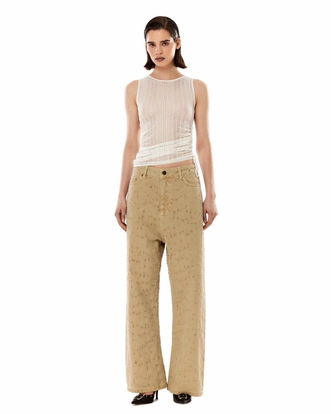 Приспосабливаем прозрачное кружево 12Storeez к офисному дресс-коду (с умеренным уровнем строгости!) с помощью шелкового бра в тон. А ажурное поло Love Republic пригодится для отпускных комбо с ярким купальником и льняными бермудами. Этим летом люверсы повсюду — от сапог Blumarine до сетчатых футболок SAMB (на контрасте с гранж-декором носим с бельем из гипюра!).