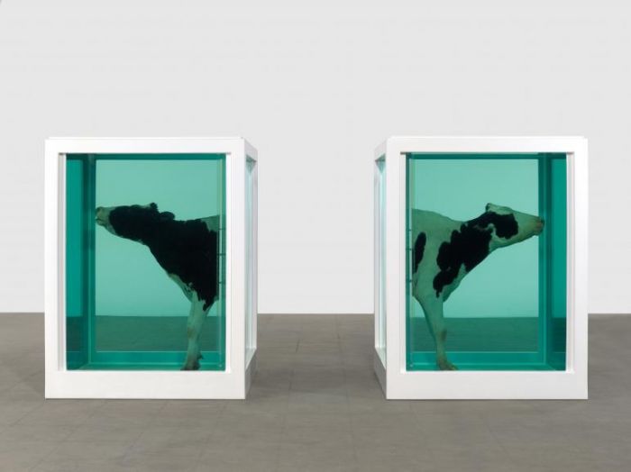 Что «Физическая невозможность смерти в сознании живущего» и «За любовь Господа», обычно называемые «Акула» и «Бриллиантовый череп», транслируют магистральную тему творчества: «Олень — животное. Воробей — птица. Россия — наше отечество. Смерть неизбежна» — минус Россия. Специально выловленная в океане тигровая акула с раскрытой пастью засунута в огромный ящик с формалином, где она висит в невесомости, как довлеющий над всем и каждым образ предельности жизни. Череп — почти бесценная конструкция из самых что ни на есть настоящих бриллиантов — сложный поп-артовый комментарий к гамлетовскому бедному Йорику.